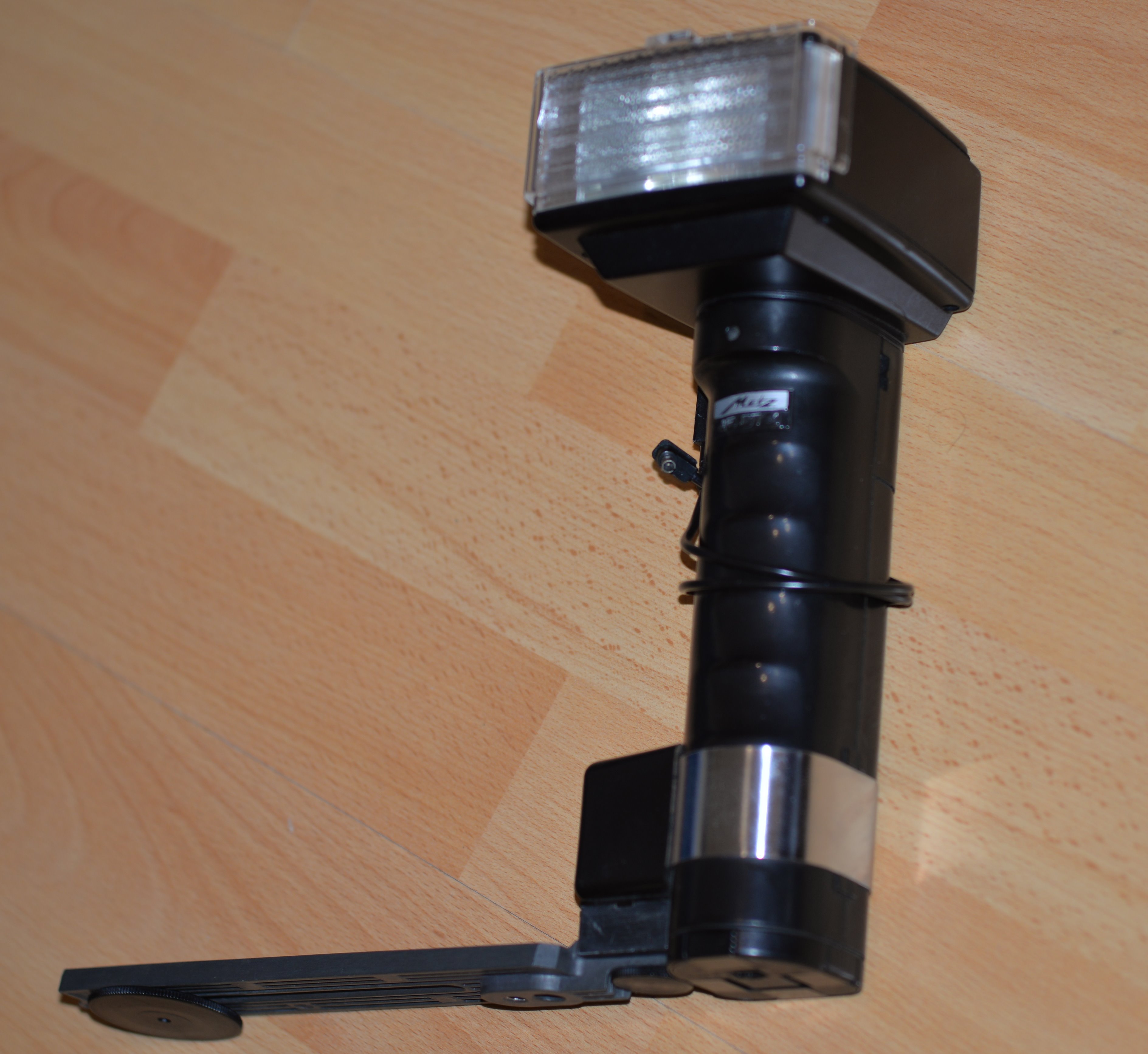Ein paar Worte zum Stabblitzer der Fa. Metz der als einer der ersten Profiblitzgeräte über einen sogenannten Telecomputer verfügte, der bei erreichen der erfordelichen Lichtmenge den Blitz selbsttätig abschaltet. Dafür stehen fünf programmierbare Arbeitsblenden zur Verfügung. Der Metz Blitz ist von der Handhabung her ein wunderbares Gerät. Durch die feste Verbindung mit der Kamera und der griffigen Oberfläche fühlt sich das Ganze sehr professionell an. Der einzige Nachteil: die ersten Modelle bis Nr. 534 000 arbeiten mit einer Hochvoltelektronik die für Kameras mit eigener Leiterplatine evtl. tödlich sein kann. Die Meinungen gehen hier etwas auseinander, es werden auch Umbausätze angeboten, ausprobieren möchte ich es lieber nicht.