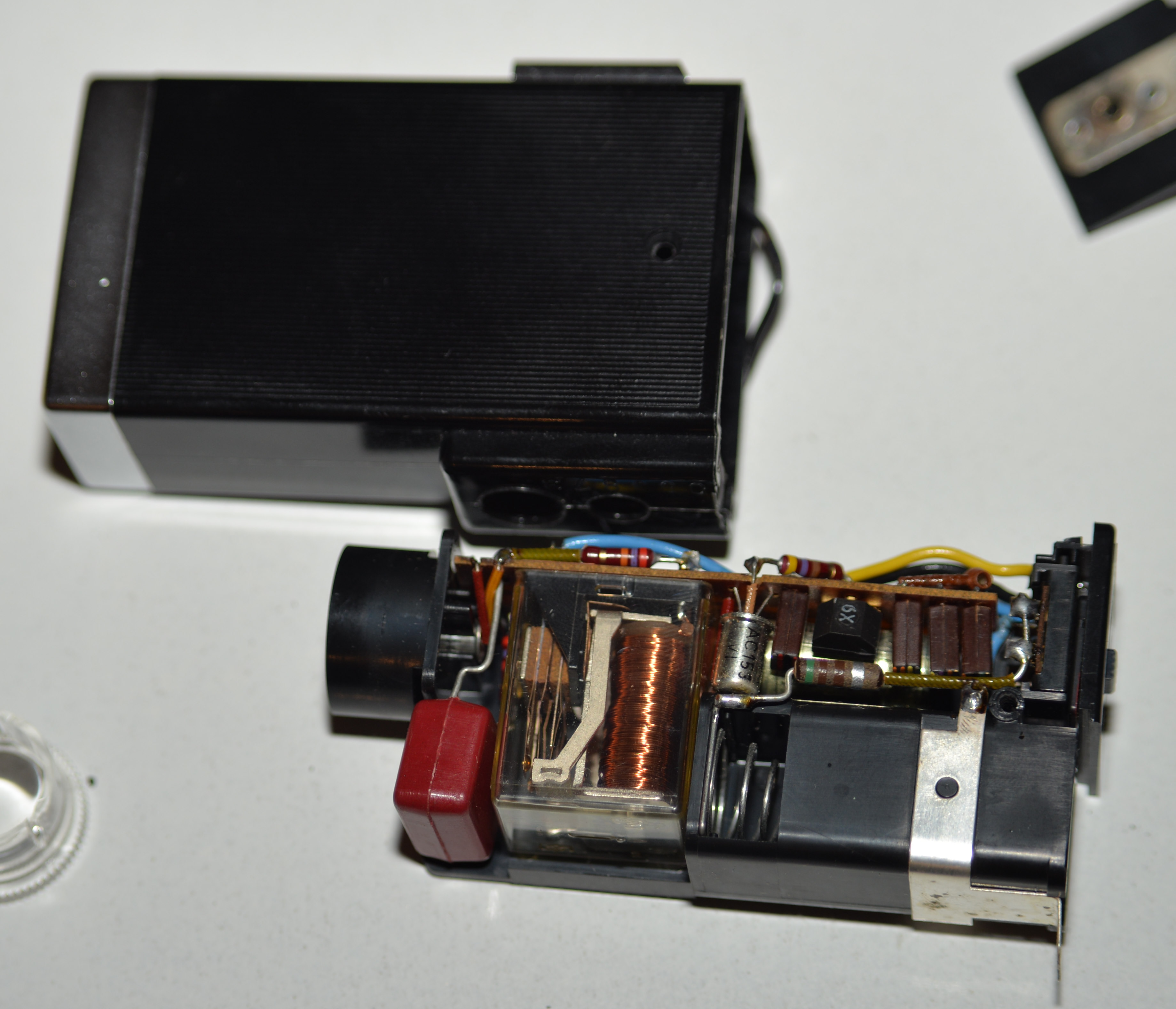 Spaßeshalber habe ich den/das Mecalux einmal aufgeschraubt und tatsächlich war ein Relais drinnen.