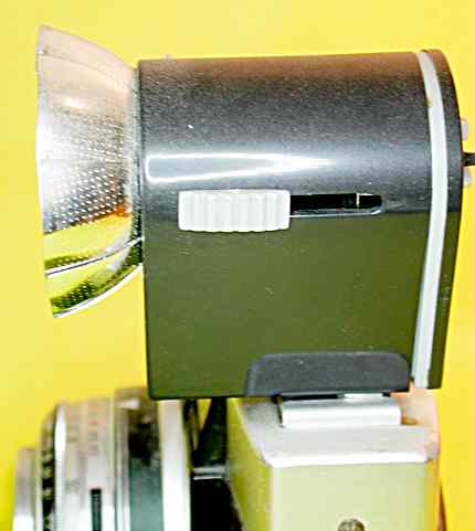 Stilistisch passt der Blitz gut zu den Agfa-Kameras seiner Zeit, hier eine Isoly.