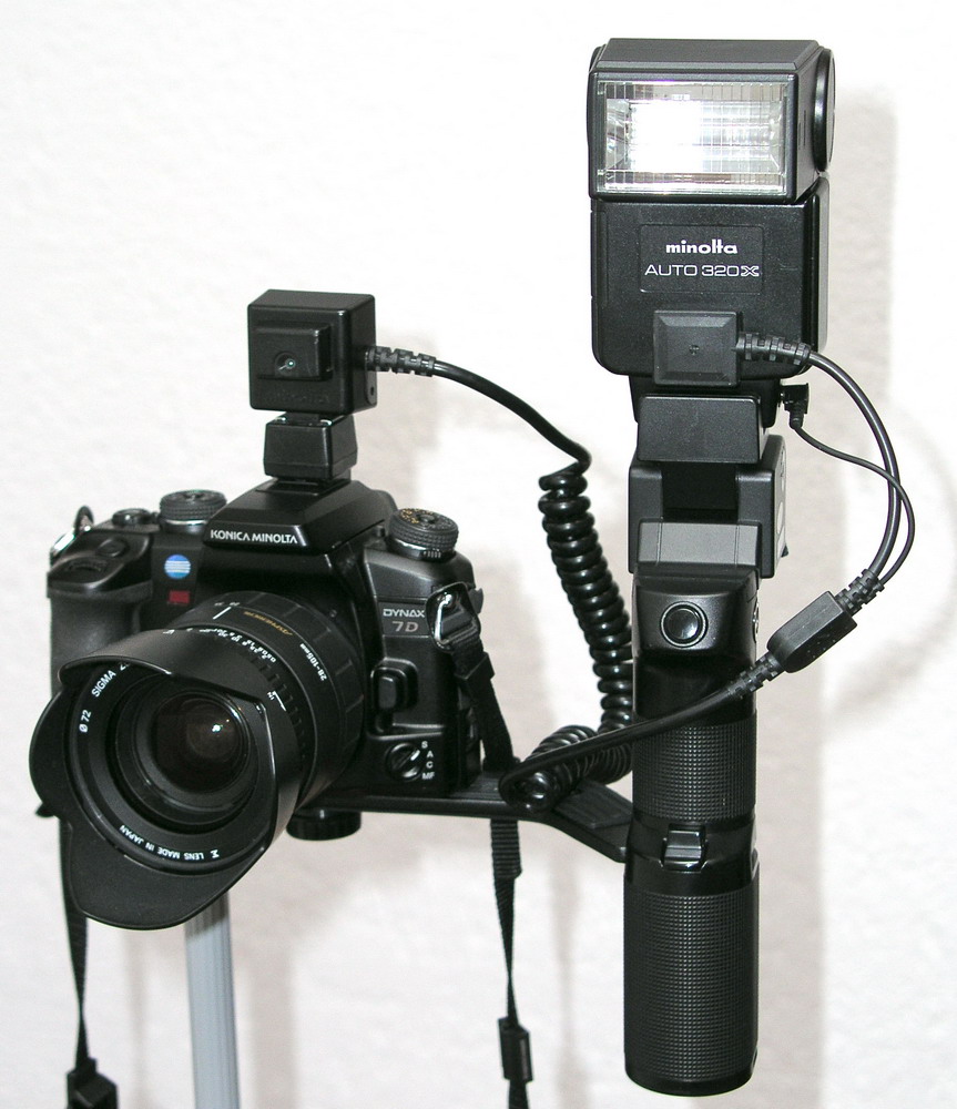 Minolta hat an alles gedacht, man brauchte "nur" viele Kabel, Winder und eine Multifunktionsrückwand. Der Power-Grip-2, ab etwa 1984 auf dem Markt, war ideal einsetzbar mit der Blitz-Belichtungsautomatik mit Messung auf dem Film (X-700, X-500, oder X-570 plus 360PX, 280PX oder Macro 80PX).