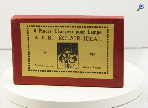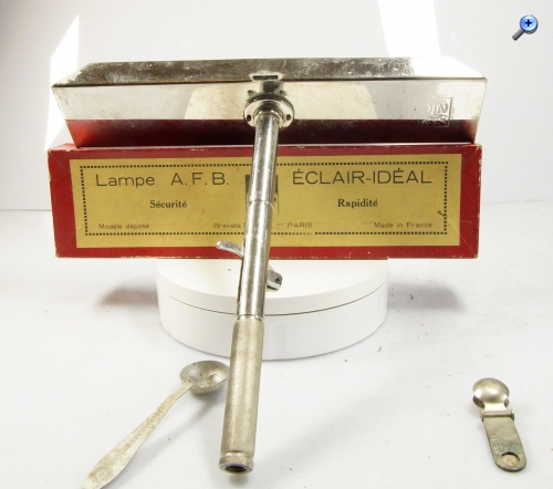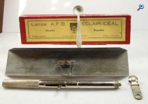 Zwar war jede Menge Papier bei dem Blitz, aber das waren, so wie ich das sehe, nur Werbeflyer, so das sie nicht wirklich weiterhelfen, und gedrucktes soll man ja ohnehin nicht einstellen. Das gute Stück kommt aus Frankreich und wurde wohl von der Firma NTC verkauft, so wie ich das Logo lese :-). Ich würde es in das erste viertel des 20ten Jahrhunderts ansiedeln.