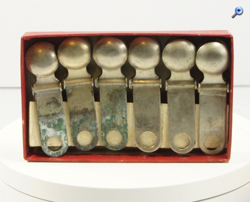 Der Blitz wurde mit Pulver betrieben und, soweit ich das sagen kann, mit einer Art Zündplättchen betrieben, welche man in diese kleinen Klammern einlegte und dann in die vorgesehene Öffnung am Blitz einschob. Ausgelöst wurde dann mit dem Federmechanismus am Griff. Da man die Zündplättchenhalter in größerer Menge kaufen konnte, denke ich, dass das Einlegen vielleicht doch nicht so einfach war, aber wie gesagt, ist Spekulation.