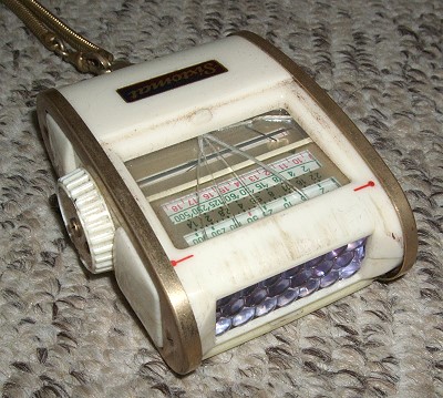 Nachdem ich das Licht gemessen hatte und den Sixtomat wieder loslies, riss die Halskette und das Gerät begann - der Schwerkraft folgend - nach unten vom Landungssteg direkt in das Wasser zu fallen. Instiktiv versuchte ich mit dem rechten Fuß den Belichtungsmesser zu stoppen. Und siehe --- es gelang ! Die auf einer Anschlußseite gerissene Kette schlang sich mit Schwung um dieses Fuß und saß fest. Aber der Belichtungsmesser schlug dabei geben den Landesteg: Gebrochenes Glas. Aber der Belichtungsmesser war gerettet, eine (teuere) neue Kette wurde gekauft und der Sixtomat versah noch brav ein halbes Jahrzehnt seine Arbeit im fast täglichen Einsatz .... Diesen schweren Einsatz kann man dem folgenden Photo ansehen.