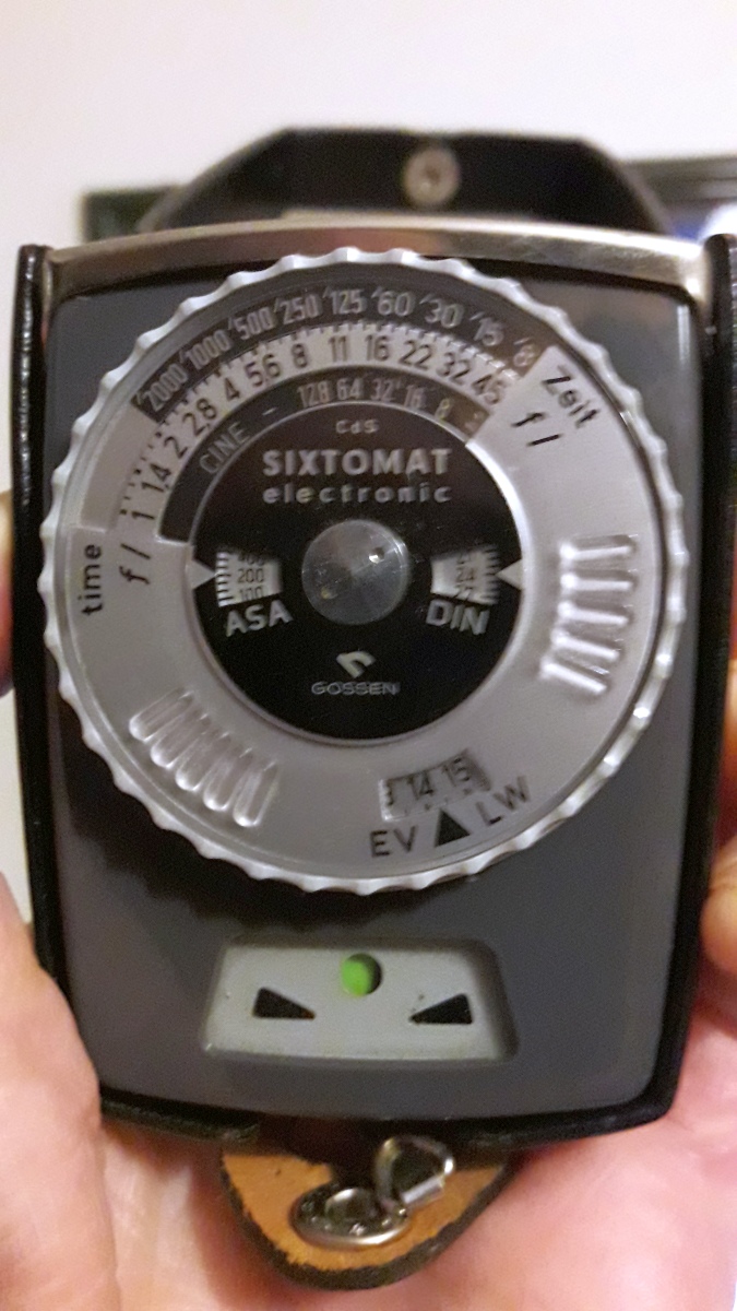 Zwei frische Batterien (Duracel 625A, 1,5V) sind drin. ISO steht auf 200. Ich drücke den Knopf links und die runde Anzeige springt auf Grün.