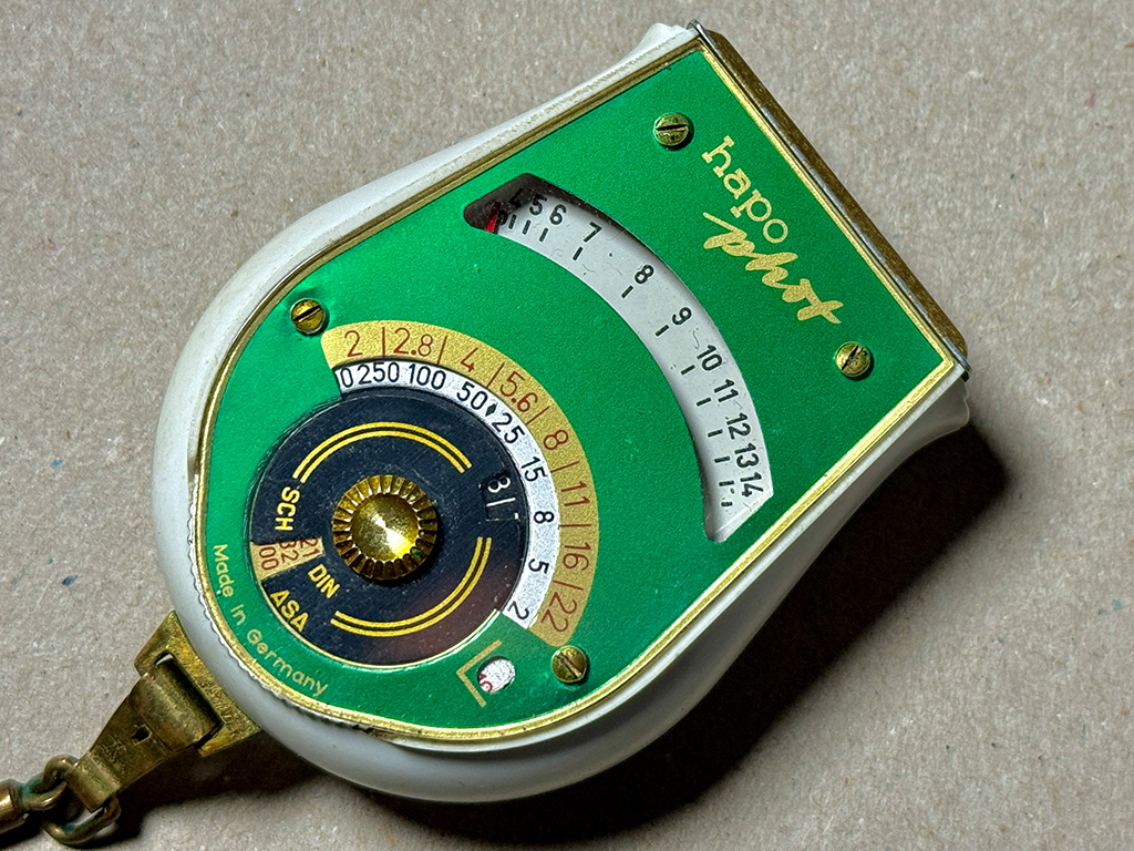 Hallo zusammen Zusammen mit einer Kodak Retina IIc habe ich einen Belichtungsmesser erhalten, der mir zuerst einige Rätsel aufgegeben hatte. Es handelt sich um einen «hapo phot», über den es fast nichts online zu lesen gibt - oder zumindest habe ich nichts gefunden ;-) Auf den Seiten von Horst Neuhaus https://photobutmore.de/vintagephoto/belichtungsmesserel/ habe ich dann entdeckt, dass der «hapo phot» von Bertram in München gebaut wurde. Er entspricht dem BEWI Amateur.