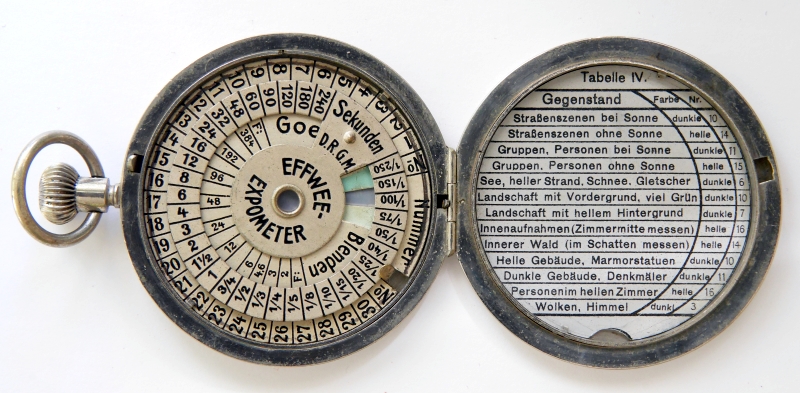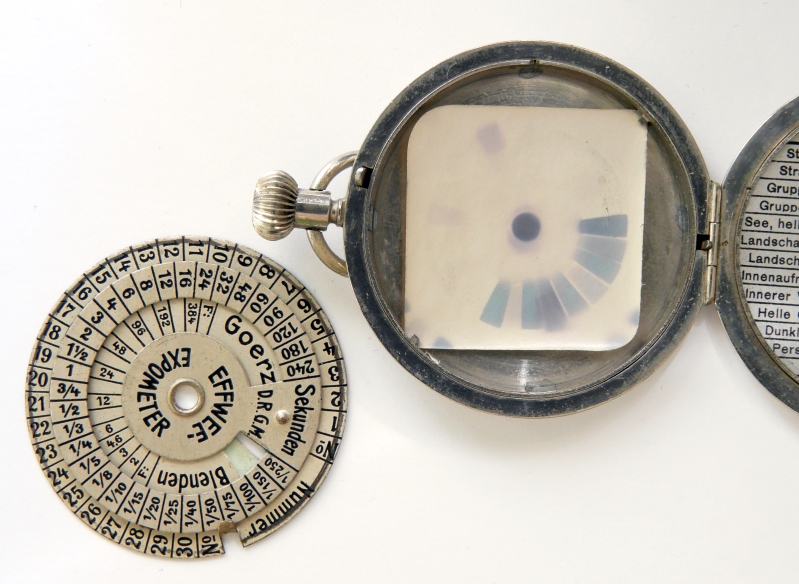 Nein, es ist keine Taschenuhr, sondern ein aktinischer Belichtungsmesser, ähnlich dem Wynne´s unfehlbaren Belichtungsmesser.