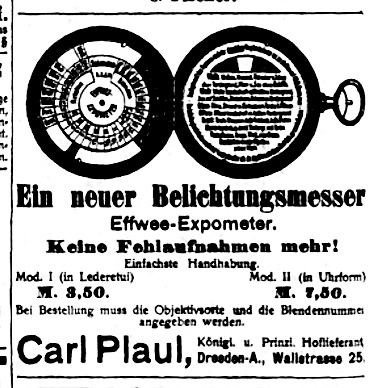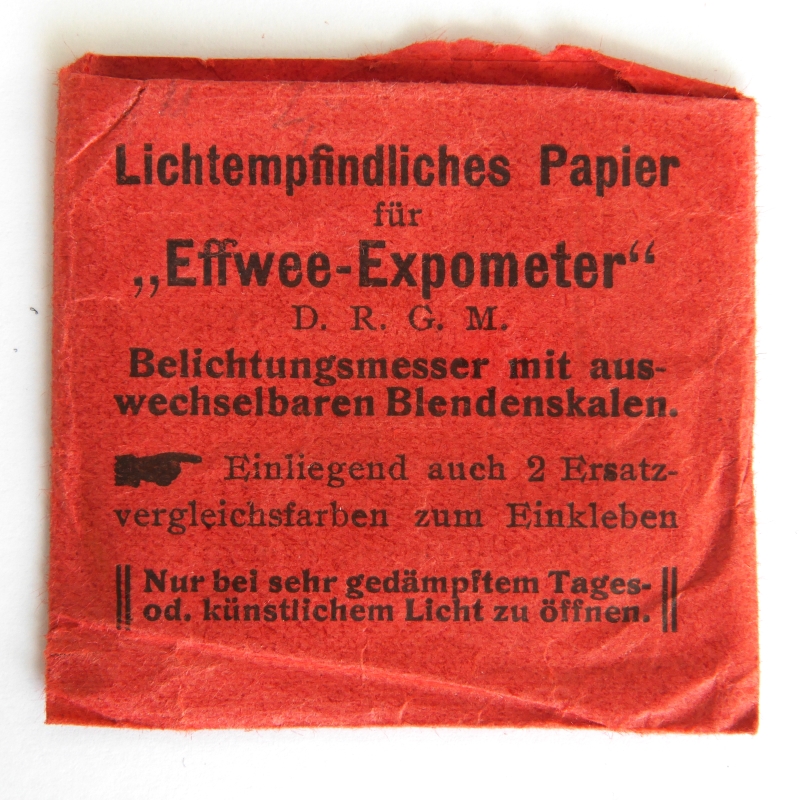 Zitat zu Belichtungsmessern von effwee: Hier ein Aktinometer / Expometer aus deutscher Fabrikation mit Dr. Rudolph's Blendenwerten (3,2-50) aus dem Jahr 1914, Hersteller Dr. F. Stolze & Co., Berlin/Hamburg.