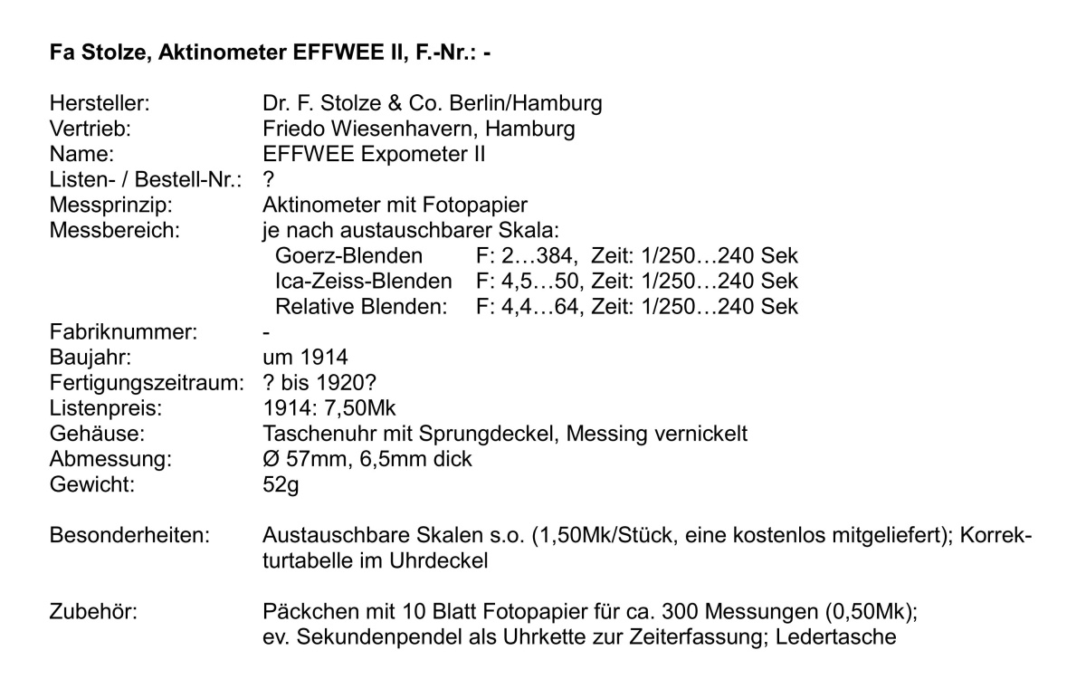 allerdings wurde der Name Stolze als Hersteller genannt, dies kann ich aber nicht unbedingt Glauben da Wiesenhavern eigentlich nur Effwee verwendete wenn es von ihm entwckelte oder exclusiv Artikel für ihn waren. Das war auch bei den Kameras (alle Welt hatte eigene Kameranamen nicht aber Wiesenhavern) Das Objektiv war aber ein Effwee aber eben nur das Objektiv.
