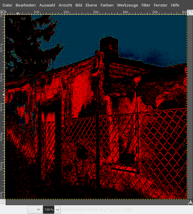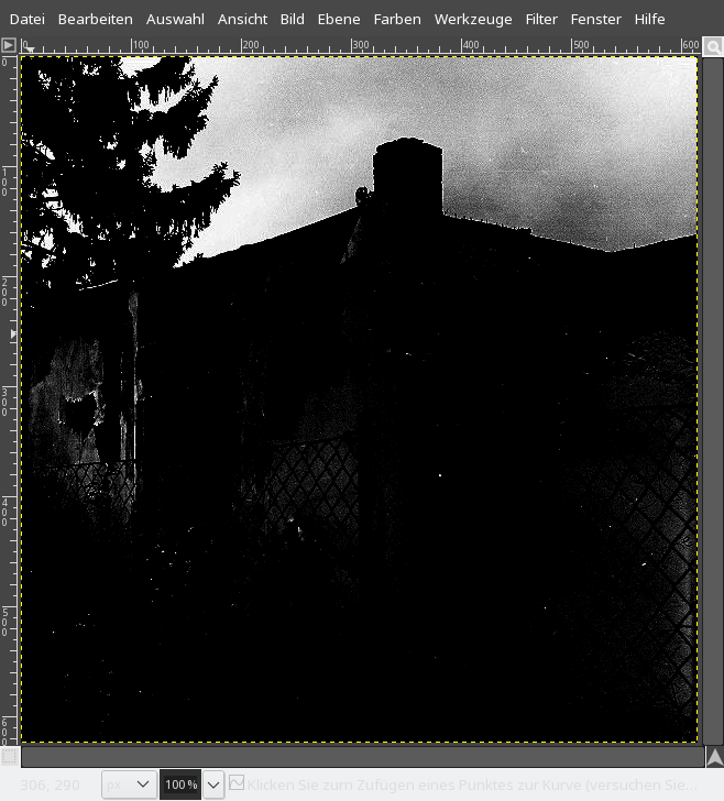 Nochmals: Des Bildrauschen habe ich noch nicht "angegriffen", muß aber sagen, bei der Betrachtung mit dem Mikroskop des Negativs, ist deutlich Korn zu sehen. Das Rauschen der Digitalkamera liegt knapp darunter bis gleich.