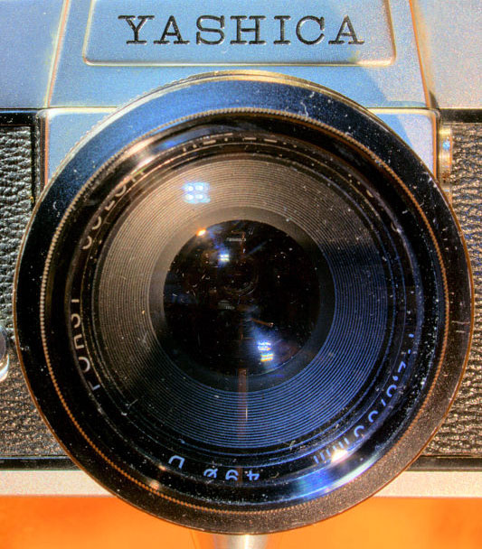 leider muß ich Dich enttäuschen, aber was Du da siehst ist bis auf ein paar ganz kleine Staubkörnchen, die man ohne Blitz kaum sieht, kein Dreck. Da ist der Lack abgeschlagen und gekratzt und diese Marken werden durch das Licht extrem hervorgehoben. Man hätte natürlich neu lackieren können, aber dann wären es ja keine Originale mehr, ausserdem sieht man es in der Vitrine wirklich kaum! Damit Dein Reinlichkeitsgefühl aber nicht dauerhaft verletzt wird, habe ich mir die Mühe gemacht, die Kamera nocheinmal zu fotografieren, dieses mal mit dem Originalobjektiv. Ich hatte es erst ohne die vorgeschraubte Nahlinse versucht, aber da sah es noch kathastrophaler aus als mit.