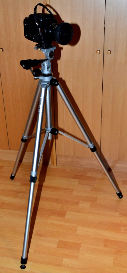 Hier einige Worte zum Mamiya 1507 Stativ. Um es kurz zu beschreiben: es ist schwer, stabil und furchtbar hoch einzustellen. Also ideal für draussen um z.B. über die Köpfe der Menschenmassen bei einer beliebigen Veranstaltung zu fotografieren. Einziger Nachteil: Ich habe keine passende Tasche um es einigermassen bequem zu transportieren. (Aber vielleicht näht mir meine Frau eine.)