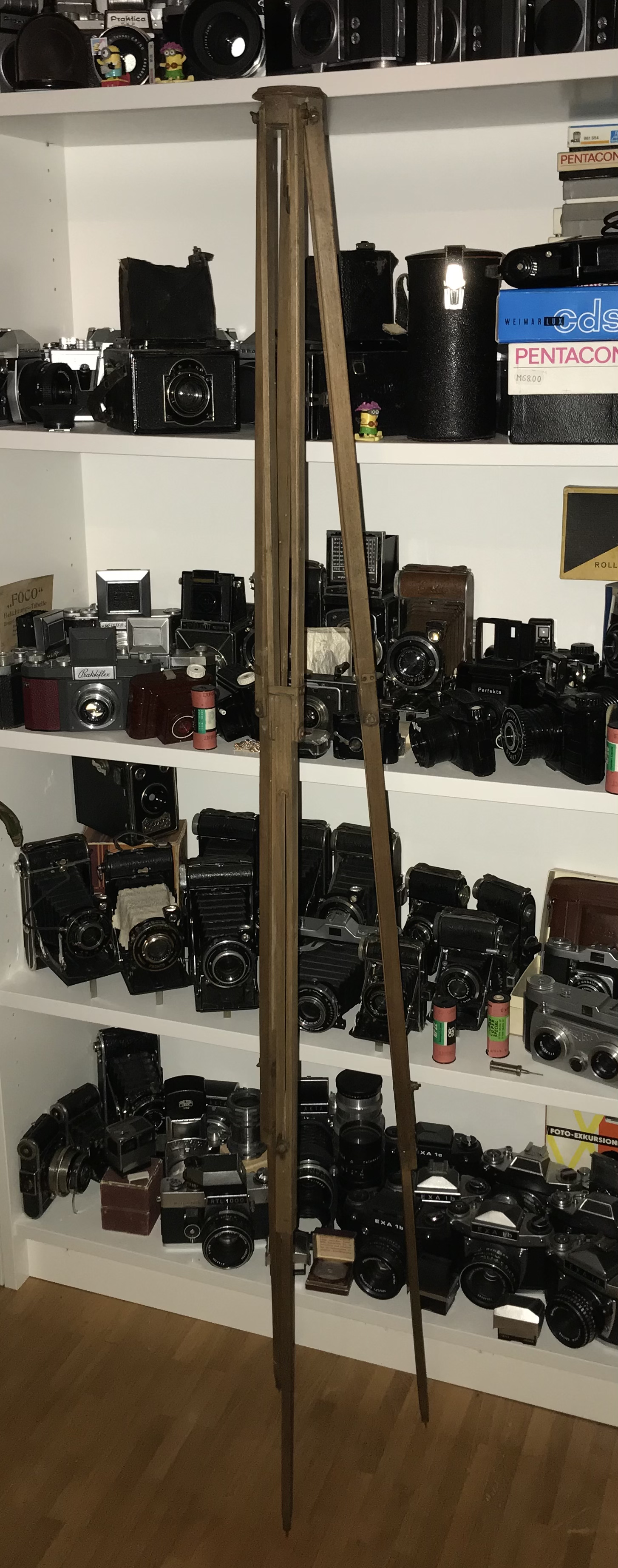 nene, das ist nur für Display oder zum fotografiert werden :-), für das Knipsen ist es mir zu wackelig, da hab ich mein Neewer. Aber zu historischem Zubehör gehört ein Stativ einfach zu finde ich. Allerdings waren mir alle die bisher unter den Hammer kamen zu teuer, irgendwie steigt der Preis sobald Holz im Spiel ist. Von den 50ger Metalldreibeinen hab ich dafür etliche.