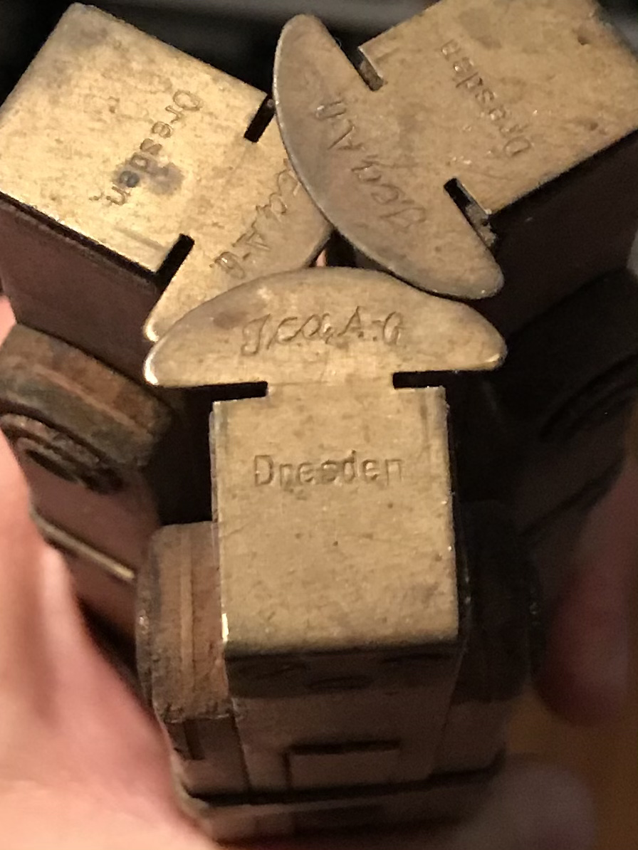 Daher habe ich nicht wirklich eine Ahnung, vermutlich gab es auch andere Ausführungen. Mir ist dabei aufgefallen, dass es nur an meine deutschen Kameras passt, mit einer 3/8, seltsam aber mir ist erst heute aufgefallen das englische und amerikanische Gewinde ein 1/4 Gewinde haben ( gemeint sind natürlich jeweils die alten Modelle, die neuen haben ja alle 1/4). Für die Instandsetzung noch eine Frage, ich denke die Trägerplatte war sicher mal mit Samt bespannt oder? Sorry für das Bild, für die richtigen Fotos muss ich erstmal raus, oder die Spitzen der Beine schützen.
