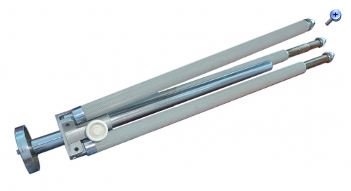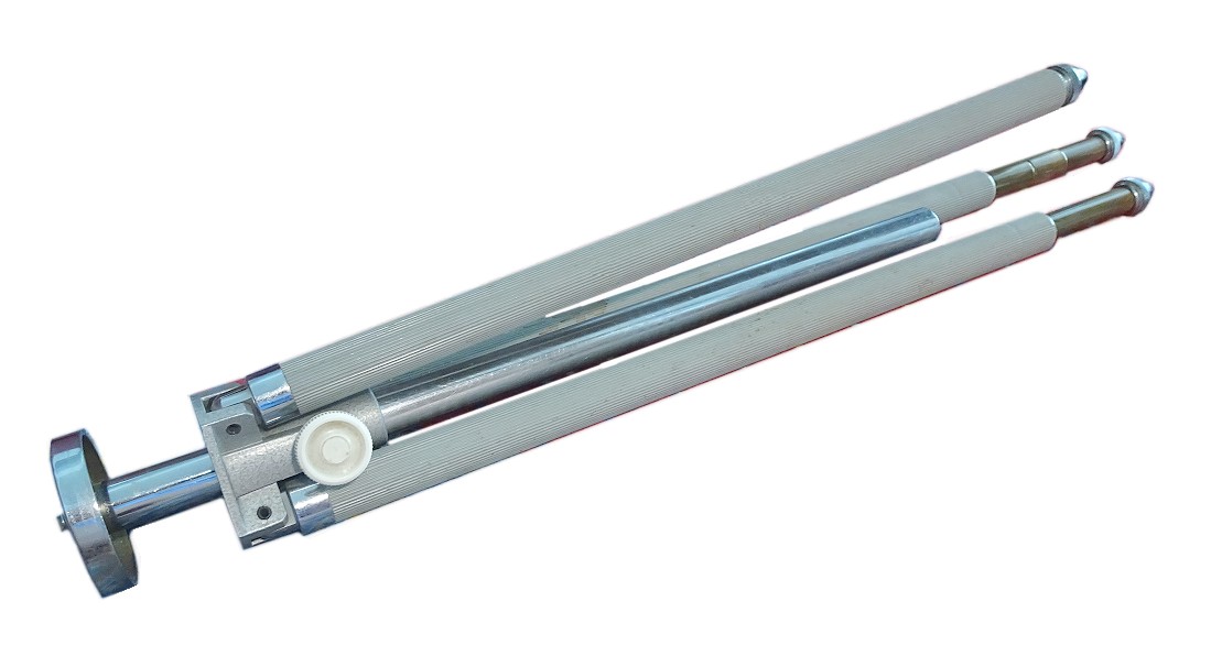 in den sechziger Jahren in Berlin Gesundbrunnen, Badstr. 66 bei Foto-Königsfeld gekauft: Seifert Excelsior Mi3-Stativ **. Es hat ein dreiteiligen Teleskop-Fuss für die drei "Beine". In der Mitte kann ein Verlängerungsstab nach oben ausgefahren werden. Das Gewinde ist für beide Fassungen von Kameras. Material teilweise Messing.