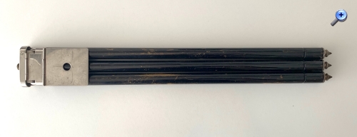 Hier scheint es sich um die Standardversion zu handeln. Voll ausgezogen erscheint es mir für schwere Kameras nicht geeignet; die Rohre schwingen doch etwas. Ohne Kugelkopf oder Neiger sind die Einstellmöglichkeiten auch begrenzt, die Ausrichtung der Kamera erweist sich als Geduldsspiel. Aber entsprechendes Zubehör war natürlich im Programm; darunter auch ein Stativfeststeller „Stabil“, der für glatte Böden unbedingt erforderlich war/ist, wie ich festgestellt habe.