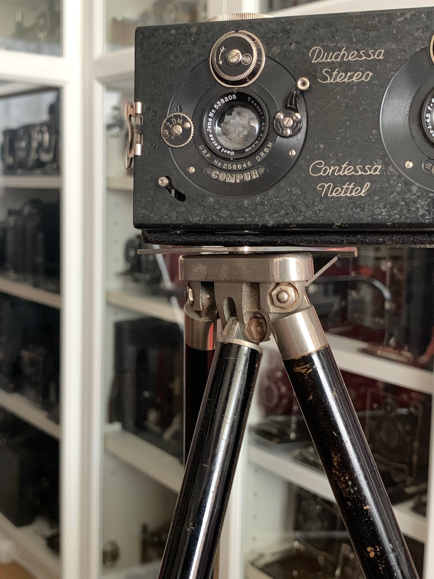 Hier ein „Flachkopf-Metallstativ“ – so wird es in den Katalogen geführt – von Contessa Nettel.