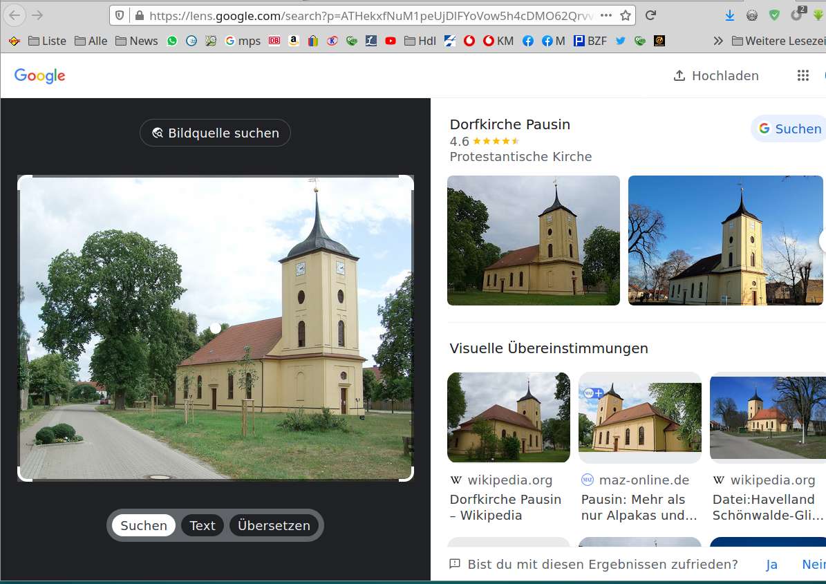 Nachdem Du schon die Anleitung gegeben hast, bleibt mir nur, sie mit einem Bildschirmabdruck zu ergänzen, anhand dessen ich Rainer geantwortet hatte. War mein erster Versuch mit der Google-Bildersuche und ich finde es erstaunlich, was heute schon möglich ist: