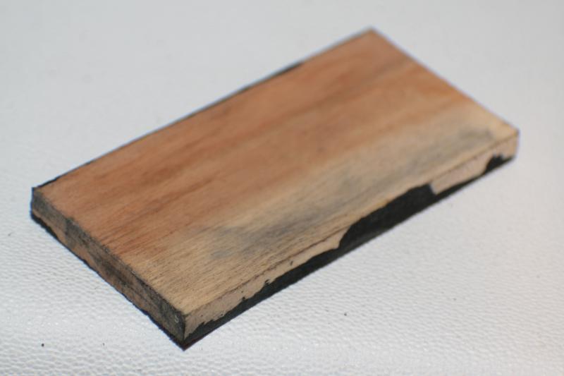 Rätsel 2: Nachdem ich die Frontplatte einer Kamera abgeschraubt hatte, fand ich dieses lose eingefügte und für korrekte Funktion der Kamera unerläßliche und originale Bauteil vor. Beim Wiedereinfügen saß es leider nicht mehr so sicher fest - Holz schrumpft im Lauf der Zeit eben ein wenig - und ich klebte es leicht an, um ein leichtes Verrutschen und damit eine verschlechterte Funktion zu vermeiden. Ein wenig schwarze Farbe an der richtigen Stelle hätte auch ausgereicht und wäre u.U. sogar besser gewesen. Welche Funktion hatte Teil 2?