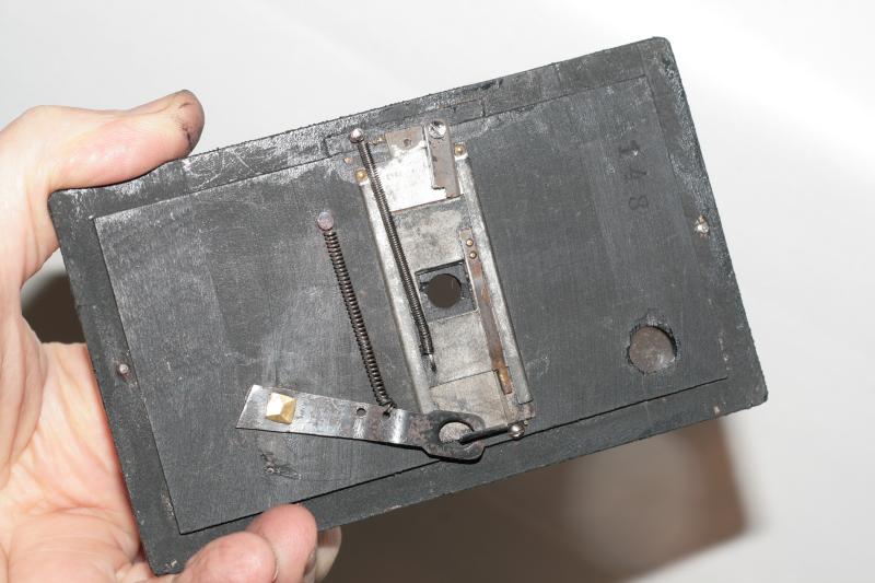 Das erste ist richtig, siehe beigefügte Bilder! Verbaut ist das Teil in einer extrem simplen Magazinkamera mit sechs 6x9-Platten. Die Kamera sieht ohne Frontbrett nach Vogelhaus aus, und insgesamt nach Werbeaktion, um speziell junge Anfänger in die Fotographie zu locken. Unwillkürlich denke ich bei ihr an einen Urahn der Agfa-Preisbox. Eigentlich meine ich, daß so eine Kamera identifiziert werden könnte ... allerdings ist an zwei Stellen die Nummer "148" zu sehen - sollte das die Kameranummer sein, sähe das nach einem Dementi dieser Idee aus ...