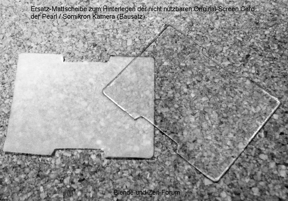 wer ebenfalls diesen Kamera-Bausatz hat und keine Bezugsquelle für das Transparentpapier "Mattscheibe" hat, kann mir im Forum eine PN (persönliche Nachricht) in das Forum-Postfach schreiben, mit Name und Anschrift oder gleich einen frankierten Rückumschlag zusenden. Ich schicke dann ein solches - schon zurechtgeschnittenes - Stück Transparent-Papier zu.