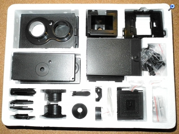 Hallo zusammen, u.a. vertreibt auch Pearl den Somikon-Kamera-Bausatz "Twin Lens Reflex Camera". Es ist ein ganz einfaches System, das wohl auch als Lern-Spielzeug für Kinder gut geeignet wäre, wenn nicht ......... aber dazu später.