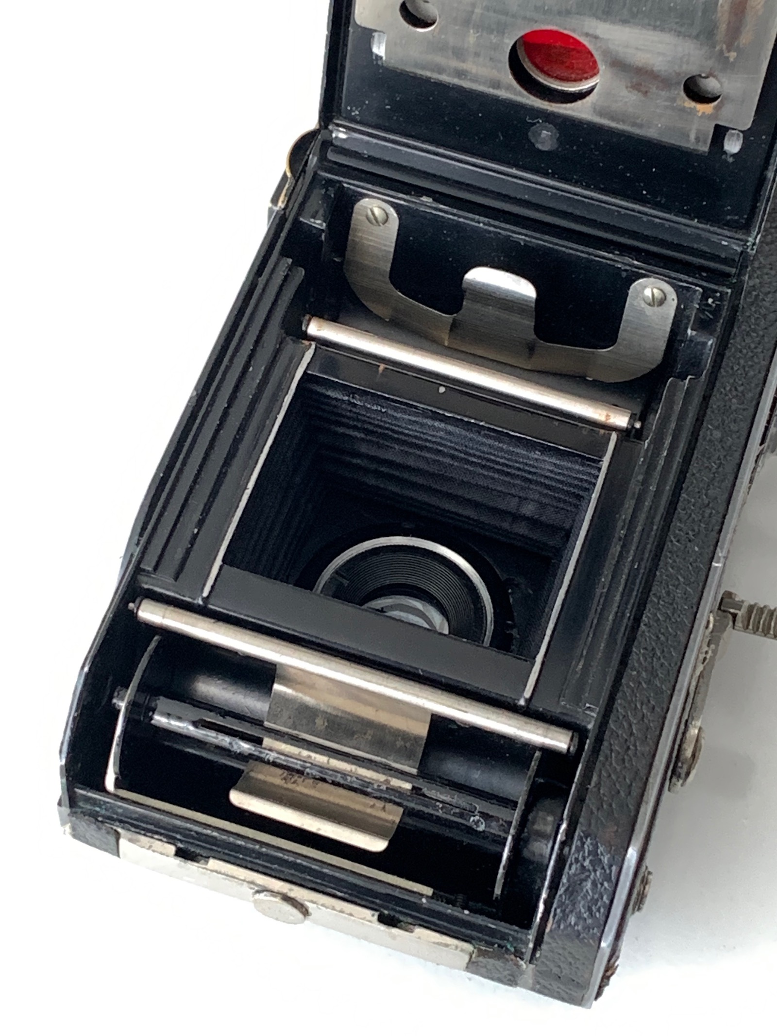 Die Kamera ist durchdacht, sehr gediegen verarbeitet und noch immer funktionstüchtig. Durch die Spreizenbauweise ist sie sehr kompakt. Bei Druck auf einen seitlichen Knopf springt das Vorderteil heraus, und der Lichtschacht öffnet sich. Der Filmtransport erfolgt über einen Schnellschalthebel; mit zwei Hebelschwüngen wird der Film um ein Bild transportiert. Der Stand ist an einem Zählwerk ablesbar; das Rotfenster auf der Rückseite dient nur zum Filmeinlegen.