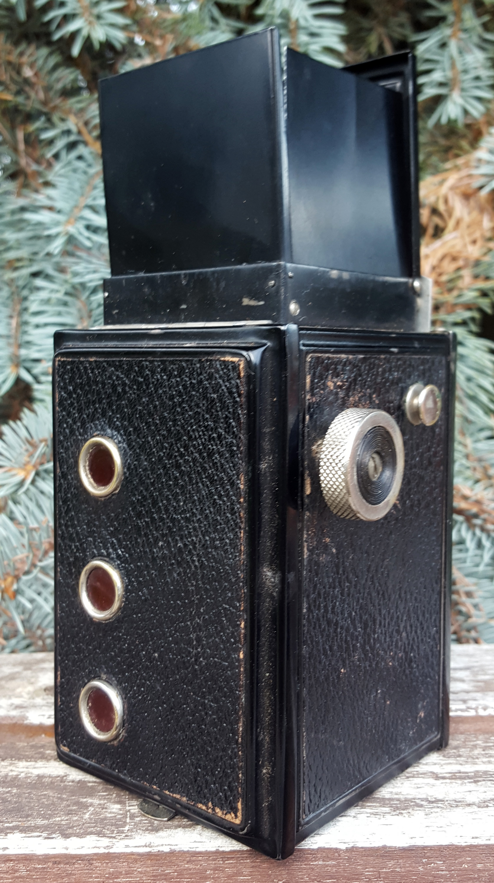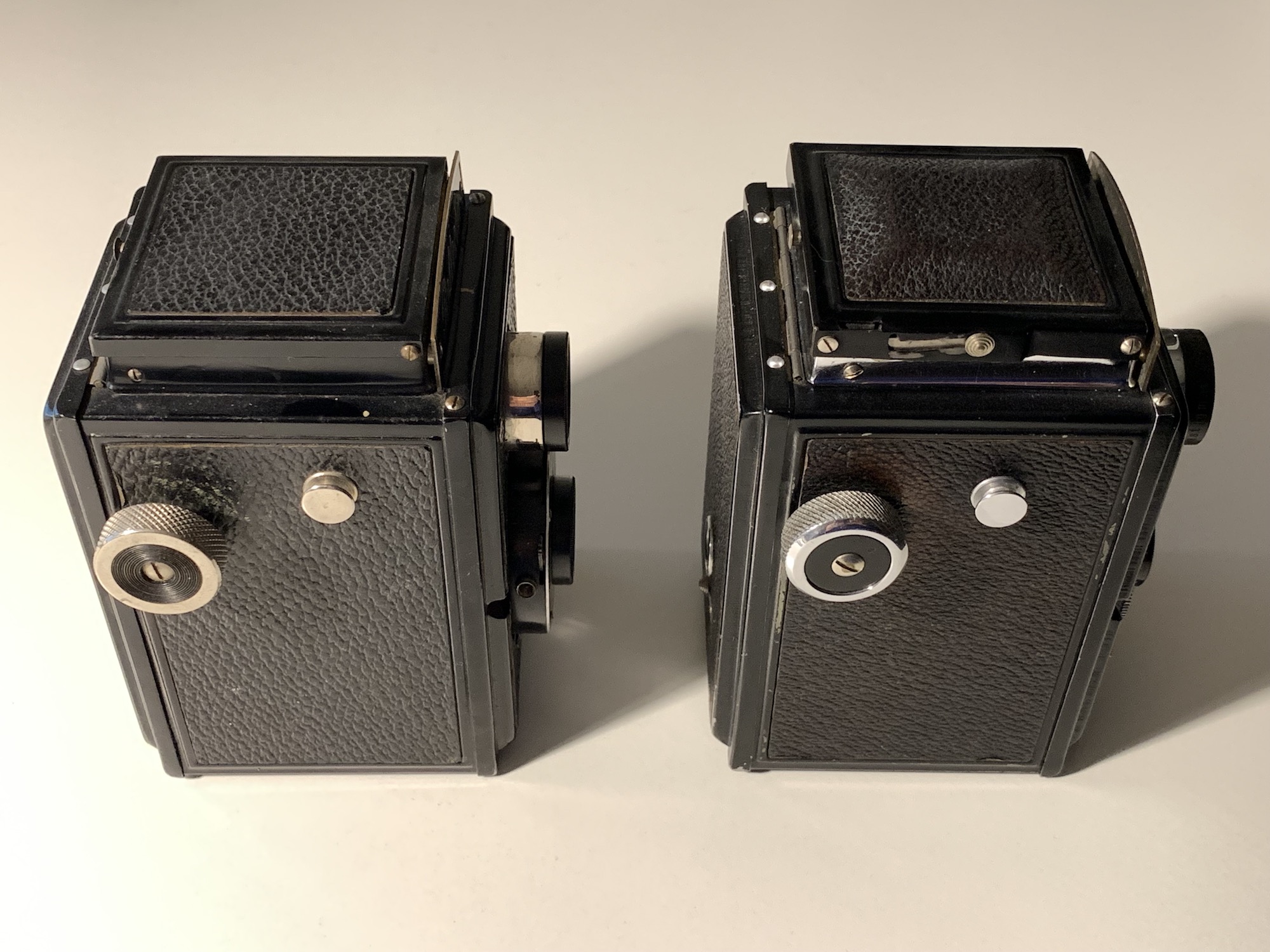 Art: zweiäugige Spiegelreflexkamera (TLR) für Rollfilm 120 (Negativformat: 60 x 60 mm)