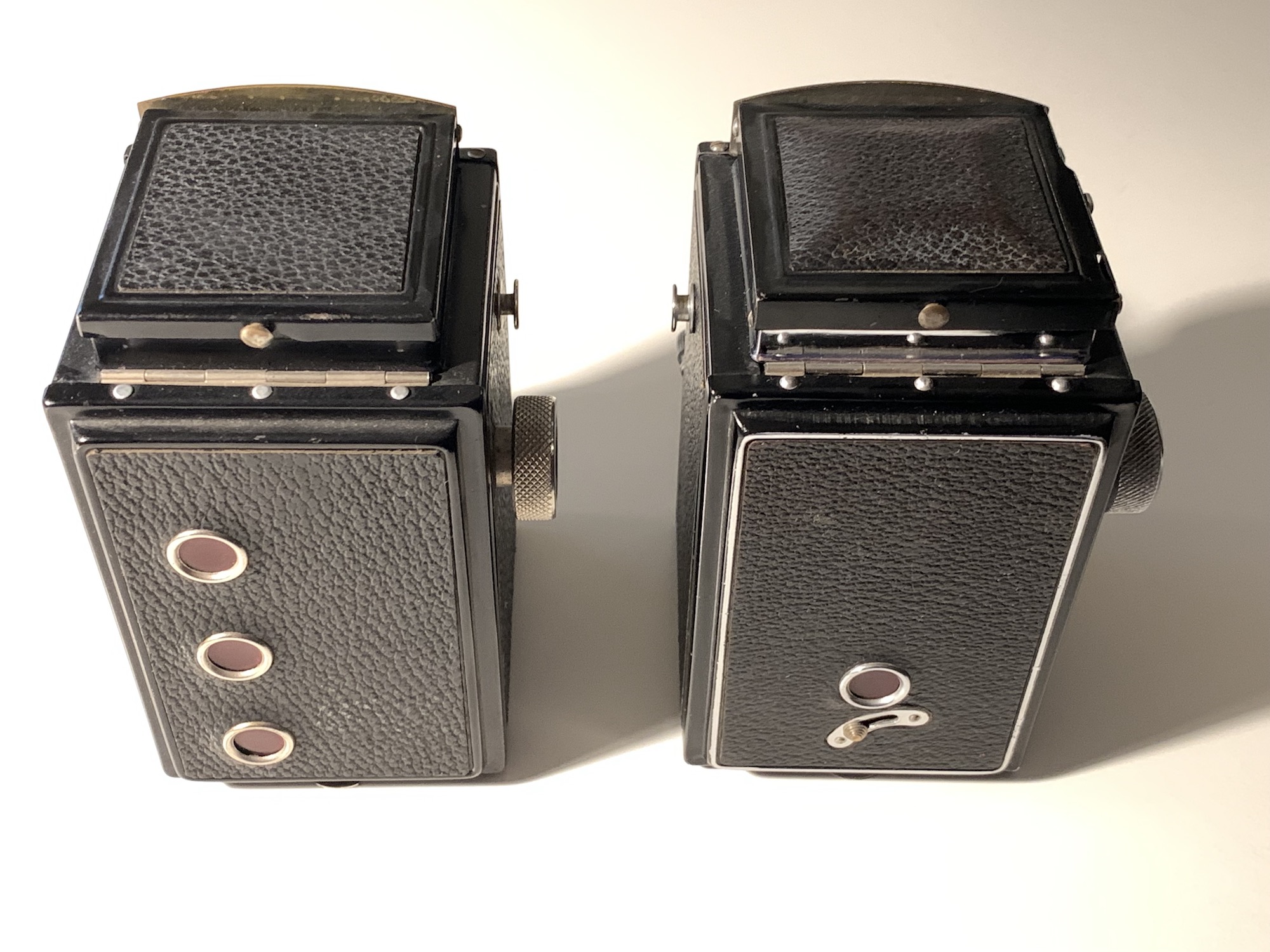 vielen Dank, sehr interessant! Ich habe den Beitrag zum Anlass genommen, mal meine beiden Exemplare hervorzuholen und zu vergleichen. Vor mir liegt ebenfalls ein Exemplar mit drei Rotfenstern; es muss aus der Zeit stammen, als noch nicht alle Filmhersteller Markierungen für das Format 6x6 vorsahen und man sich mit der 6x9-Beschriftung behelfen musste. Kennzeichen dieser ersten Modelle könnte sein, dass der Sucherdeckel plan ist und es keine Sucherlupe gibt. Ist das bei Deinem Exemplar auch so?