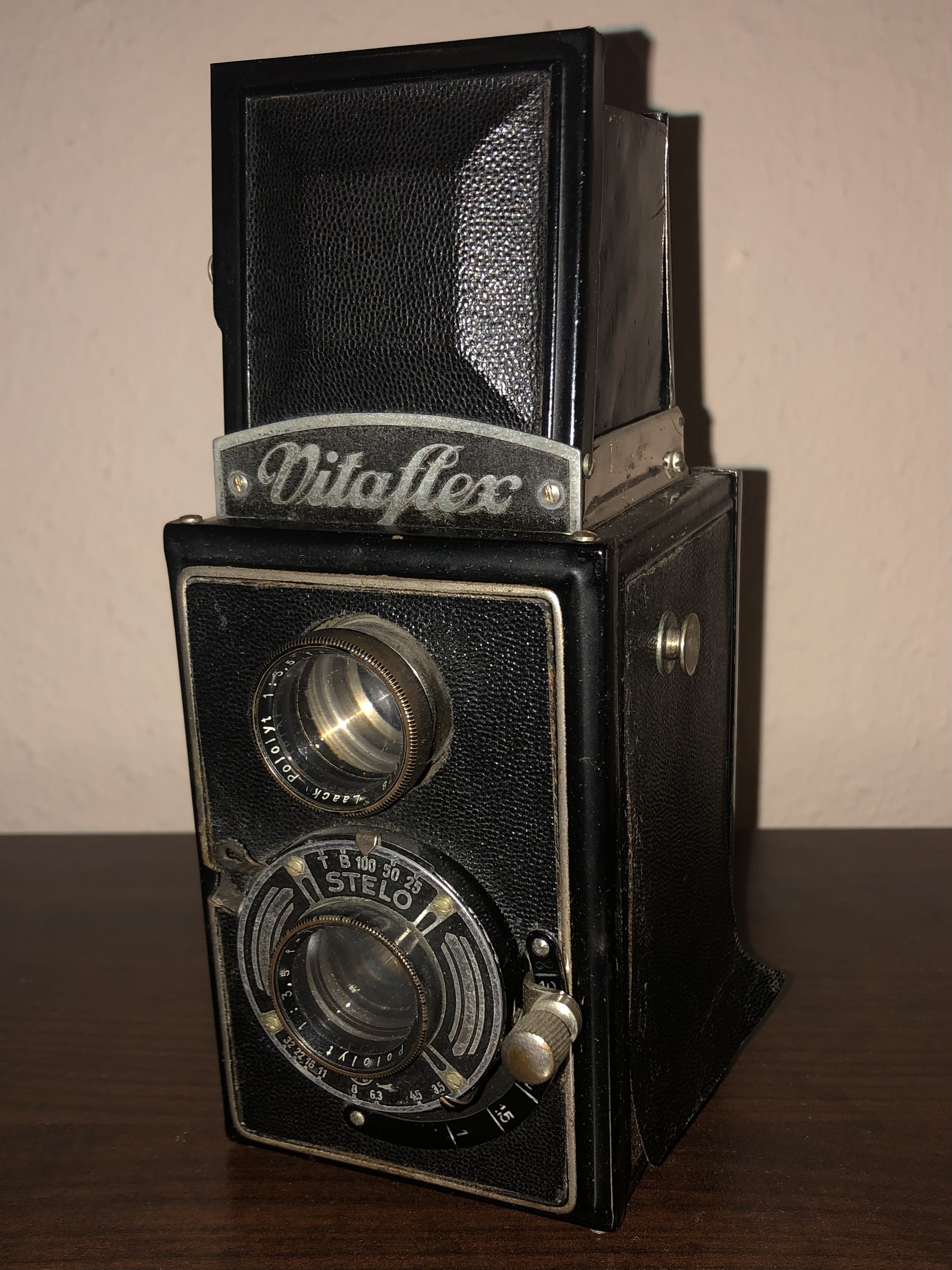 Hersteller , Baujahr: Richter (Welta), Vitaflex Format: 6x6, 120 Film Objektiv: Pololyt 3,5. 1 Meter bis unendlich Verschluß: Stelo. T, B, 1/100, 1/50, 1/25 Sek. Blenden: 3.5, 4.5, 6.3, 8, 11, 16, 22, 32 Baujahr: ca 1940