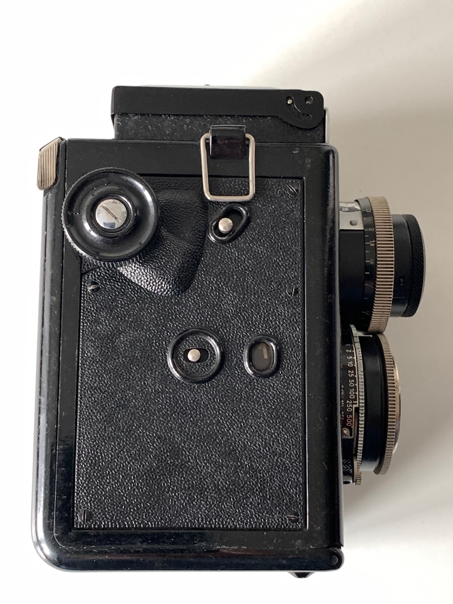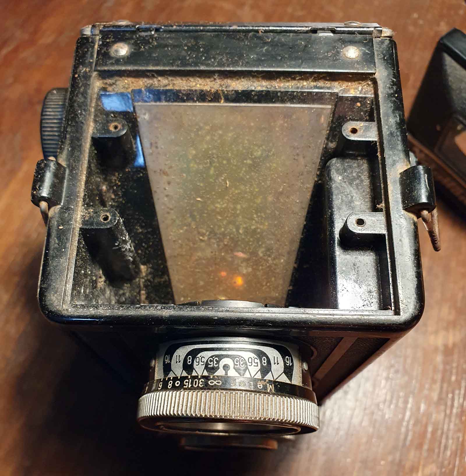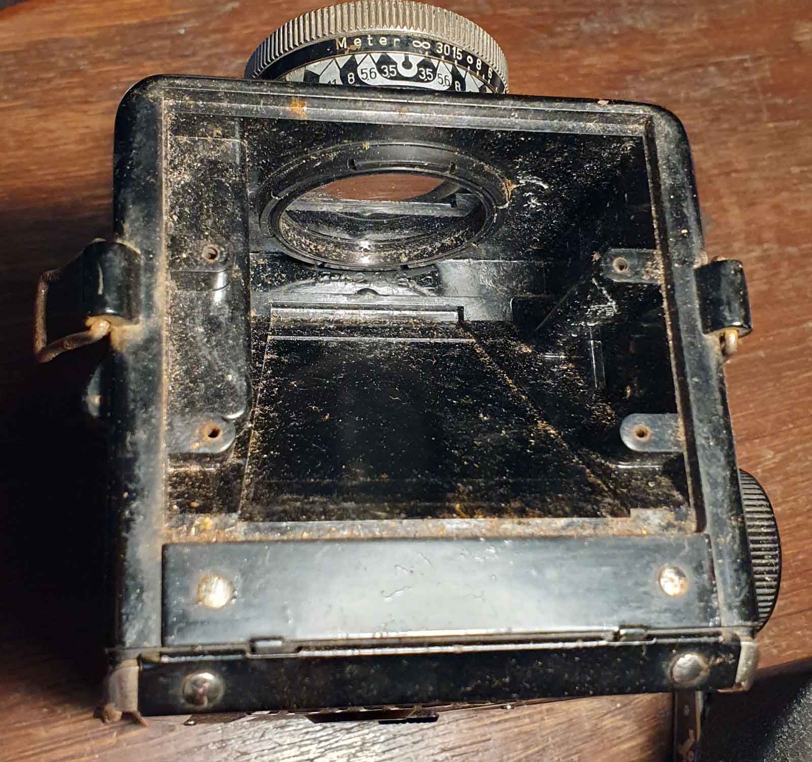 Ich habe schon länger eine Brillant S mit Voigtar 4,5/7,5 cm, die auch tadellos funktioniert. Nun ist kürzlich sehr preiswert eine mit Heliar 3,5 angekommen und diese bedarf umfangreicherer Wartung und Reinigung. Der Verschluss funktioniert nur bei den ganz schnellen Zeiten, der Spiegel ist unbrauchbar und das Zählwerk funktioniert auch nicht korrekt. Ich werde mich mal langsam voran tasten. Hier die ersten Impressionen: