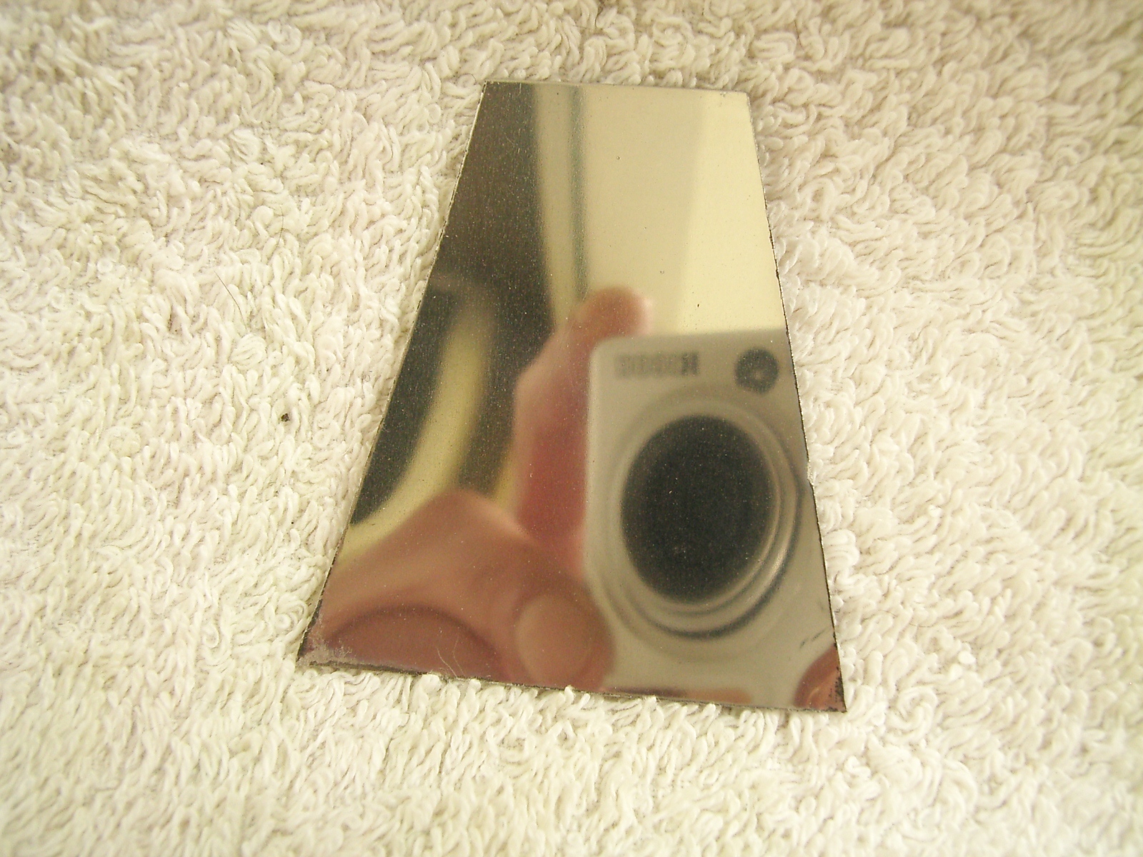 Hallo Hannes und der Rest der Gemeinde, ich hatte mich ein wenig vertan! War keine Reflecta sondern die Weltaflex! Kommt davon wenn sich mehrere im Haushalt befinden. Deren Spiegel war noch "schwieriger" zuzuschneiden da trapezförmig. Auf den Fotos mal das Material (die alte Ricoh Caplio hat Probleme genau den Spiegel zu fokussieren-daher sieht der trübe aus.)