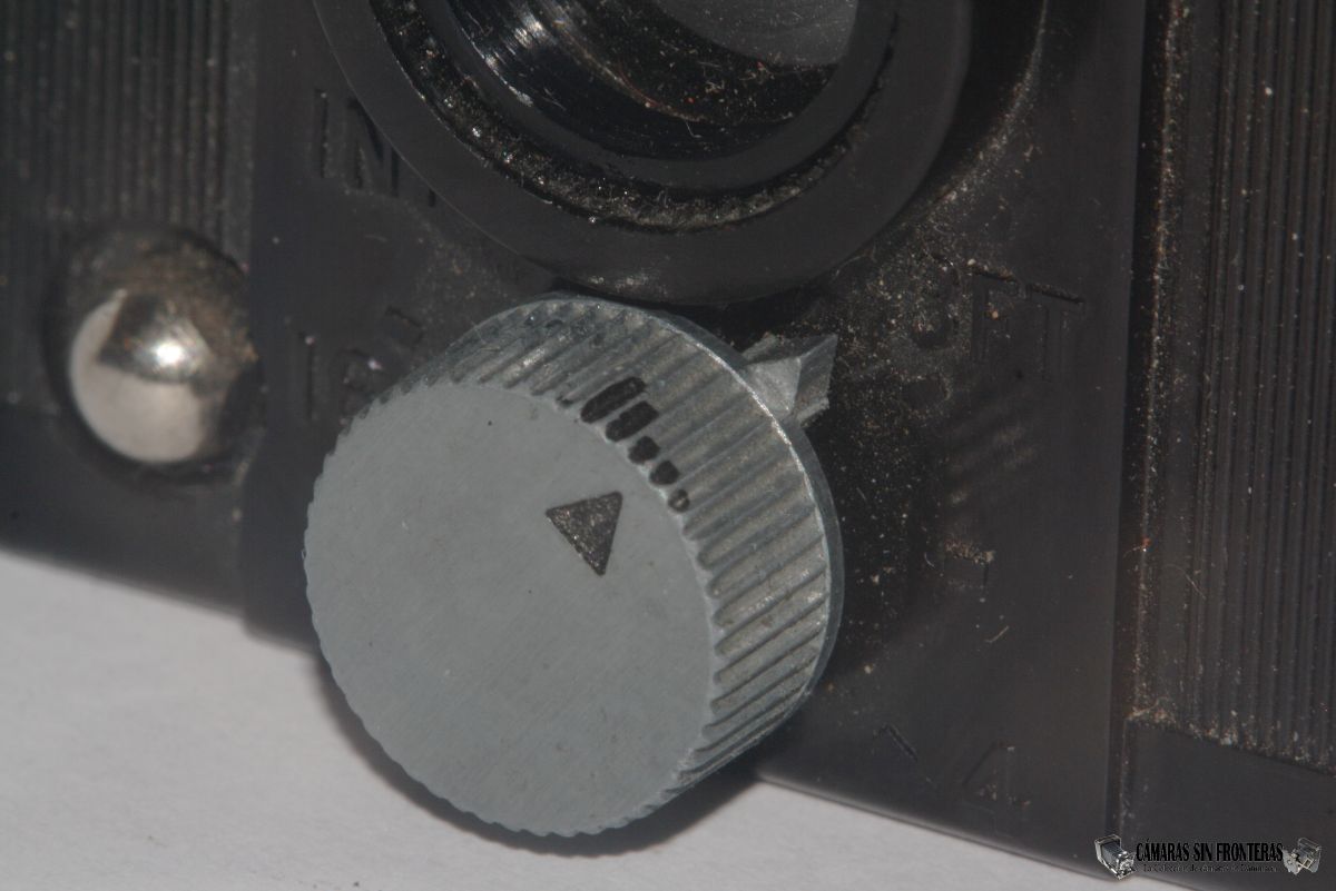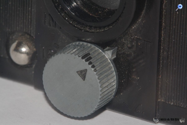 Leider gibt es ums Objektiv und Sucher keinerlei Info, so dass ich nur vermutten kann dass die feste Blende 1:11 ist (habe auch keine Info im WWW oder Bücher gefunden). Sucher und Objektiv sind identisch (zumindest der Durchmesser) deswegen vermutte ich wieder dass diese Linse einfache Linse auch 1:11 entspricht.