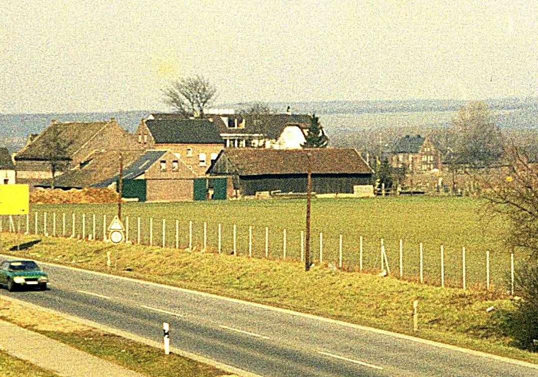 Februar 1983, Dokumentarfoto mit der Brillant als der besten Kamera, die ich hatte: Der Lückenschluß der A61 an das Autobahnkreuz Köln-West ist noch nicht erfolgt, der gesamte Verkehr geht hier für wenige Kilometer über die Landstraße. Die Vignettierung geht auf das Hochziehen des Kontrastes in der Nachbearbeitung zurück, da das Objektiv zu dieser Zeit schon ein wenig blind war: