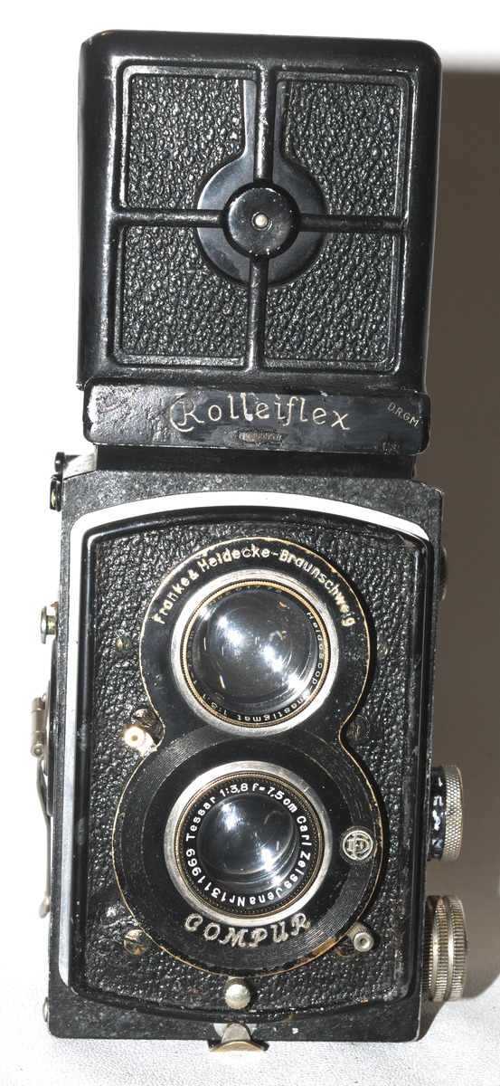 Es ist mir gelungen, die beim Kauf defekten bzw. nicht funktionierenden Teile (Visiereinrichtung, Entfernungseinstellung) wieder funktionsfähig zu machen. Das ging allerdings nicht ohne Kompromisse, beim Erscheinungsbild blieben die im Rahmen des Üblichen - siehe erstes Bild. Rolleiflexe dieser Zeit tragen oft sehr deutliche Abnutzungsspuren, schließlich handelt es sich besonders bei den ersten um Kameras, die intensiv genutzt wurden, oft in professionellem Einsatz. Die Kamera ist jetzt im Prinzip einsatzfähig - im professionellen Bereich aber sicher aber nicht mehr