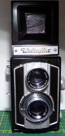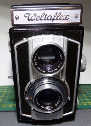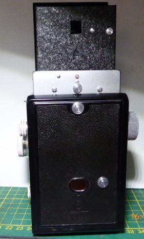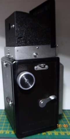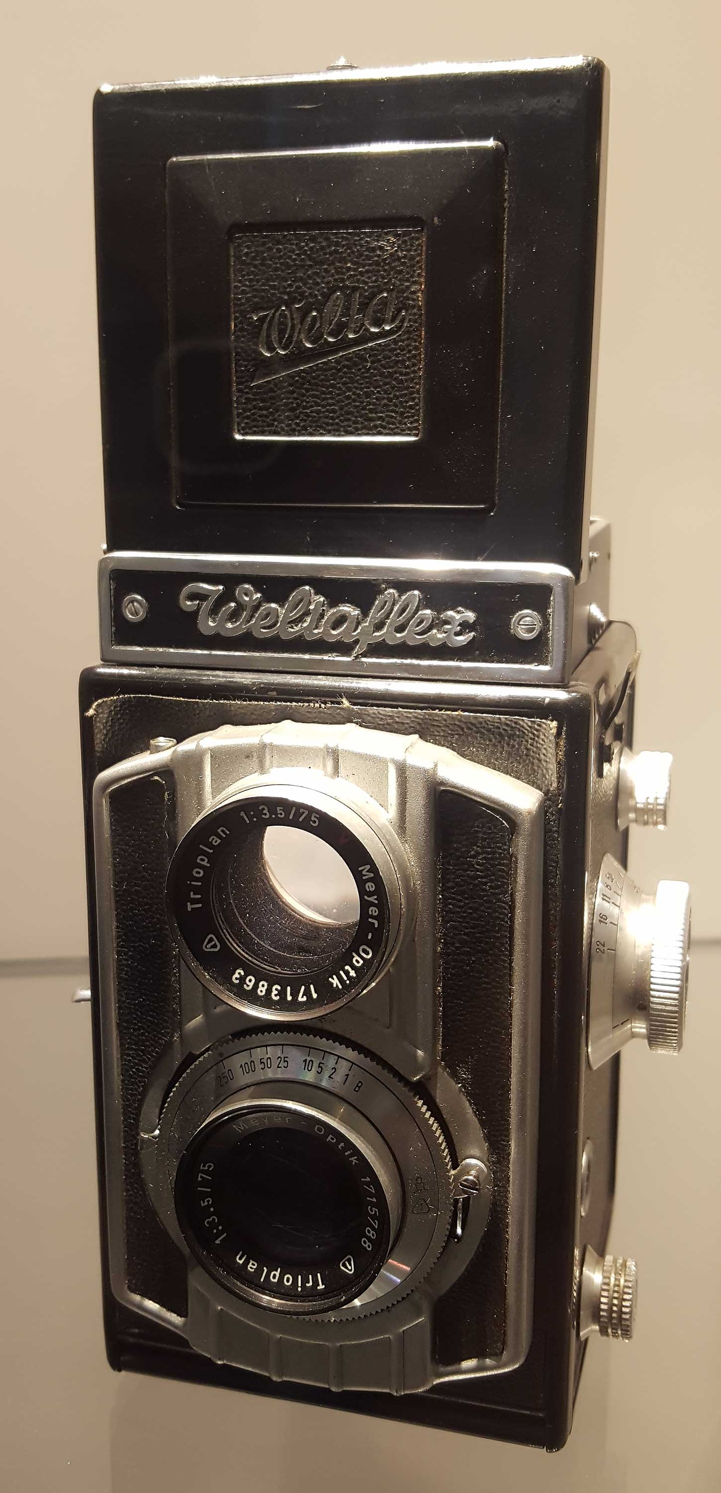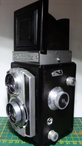 Art: zweiäugige Spiegelreflexkamera (TLR) für Rollfilm 120 (Negativformat: 60 x 60 mm)