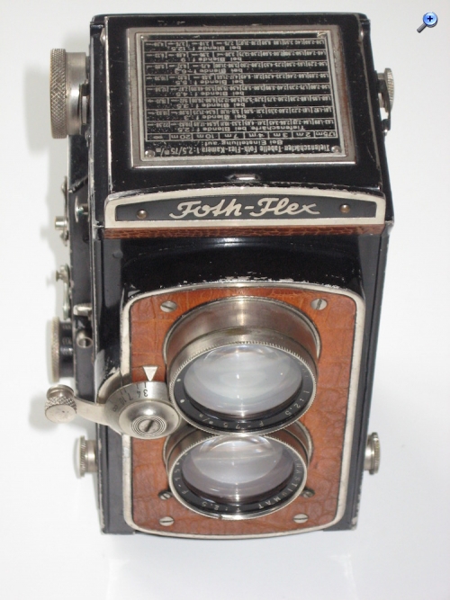 nachdem die Rolleiflex etabliert war und das TLR-Prinzip sich als erfolgreich erwies, gab es seit Beginn der 30er Jahre ähnliche Kameras anderer Hersteller, die sich hinsichtlich Konstruktion und/oder Anspruch von der Rollei unterschieden. Dazu gehörten auch die Foth-Flex-Modelle des Berliner Herstellers Foth (um 1935 erschienen). Die Besonderheit ist, dass hier ein Schlitzverschluss verwendet wurde, gewissermaßen ein Markenzeichen von Foth (verwendet auch schon bei der erfolgreichen 3x4-Rollfilmkamera Foth Derby).