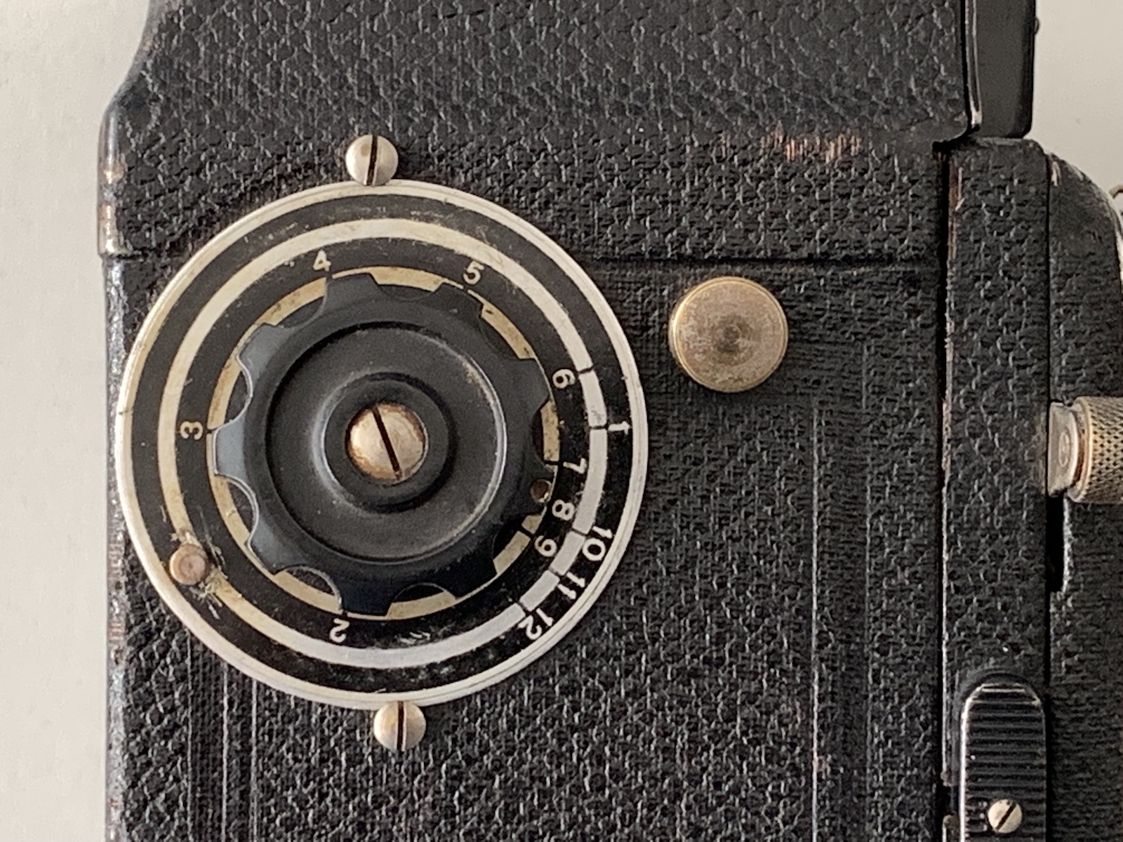 An diesem Exemplar ist auch ein Zählwerk vorgesehen, dessen Funktion sich mir bislang allerdings nicht erschlossen hat. Die Scheibe ist drehbar, allerdings nicht mit dem Filmtransport gekoppelt.