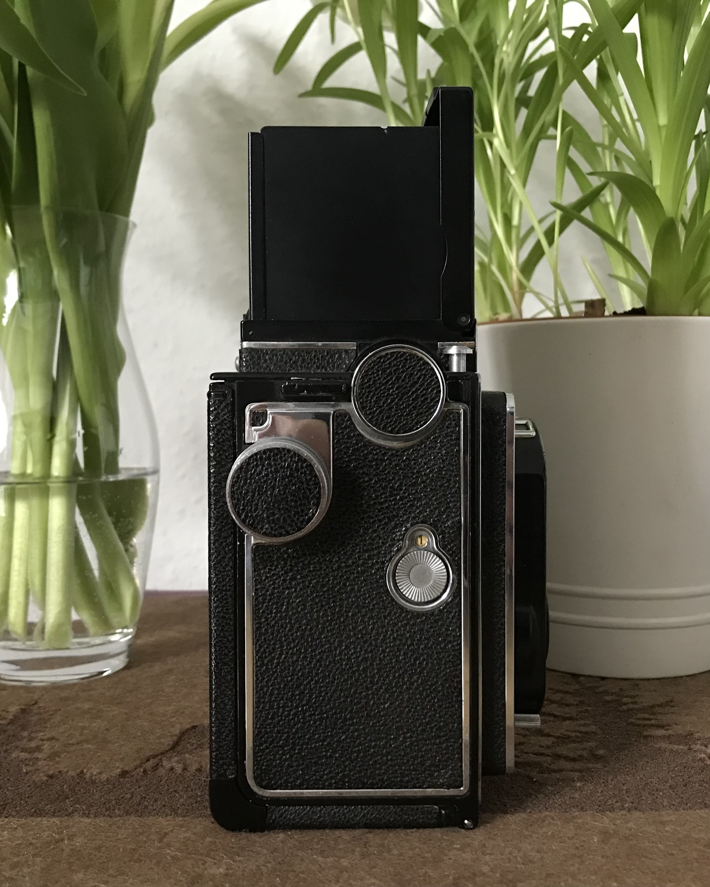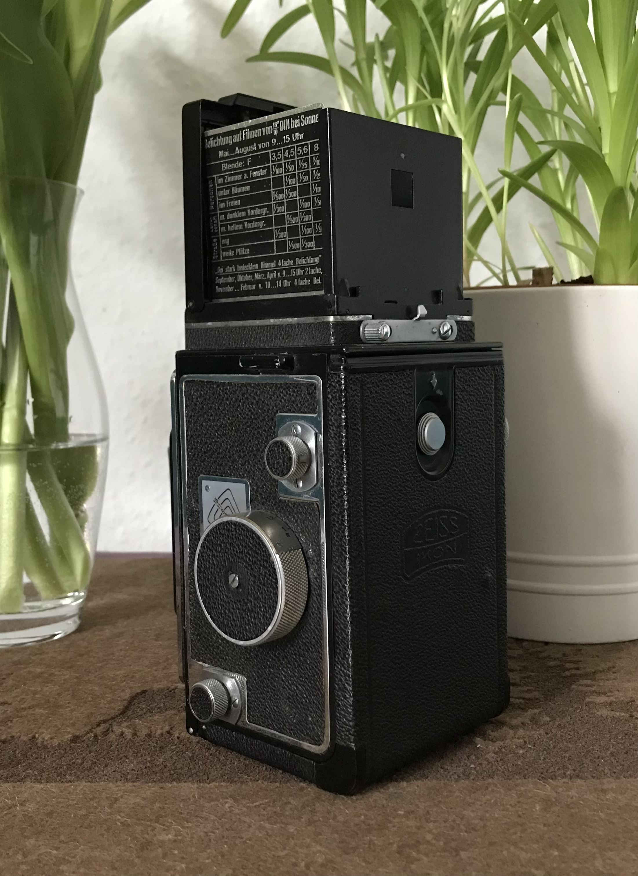 1938 vorgestellt dann zur II umbezeichnet war sie vom Design her eine sehr elegante Kamera mit einer Ausstattung und Qualität die der der Rolleiflex in nichts nachstand. Mein Exemplar ist ausgestattet mit einem
