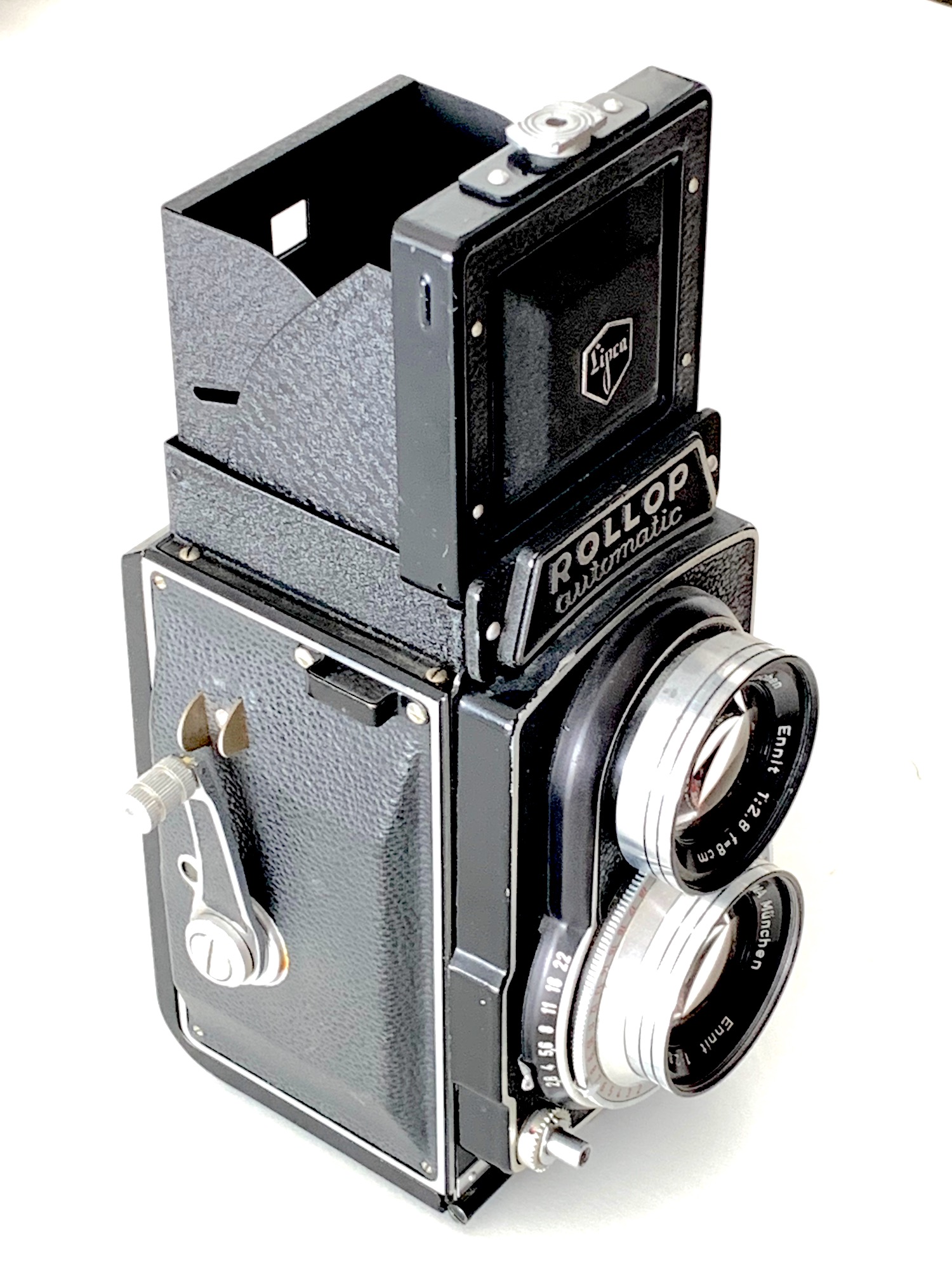 in den 50er Jahren waren TLRs sehr beliebt, und neben Franke & Heidecke und Zeiss Ikon gab es eine ganze Reihe kleinerer Hersteller, die solche Kameras im Programm hatten; meistens waren das recht einfach ausgestattete Typen. Zu diesen Herstellern gehörte auch die Lippische Camerafabrik (Lipca) in Barntrup: Sie bot die einfachen Modelle Flexo und Flexora an (die westdeutsche Fortsetzung der Reflecta von Richter, Tharandt), außerdem die Rollop-Serie. Spitzenmodell dieser Kameraserie ist die Rollop Automatic: