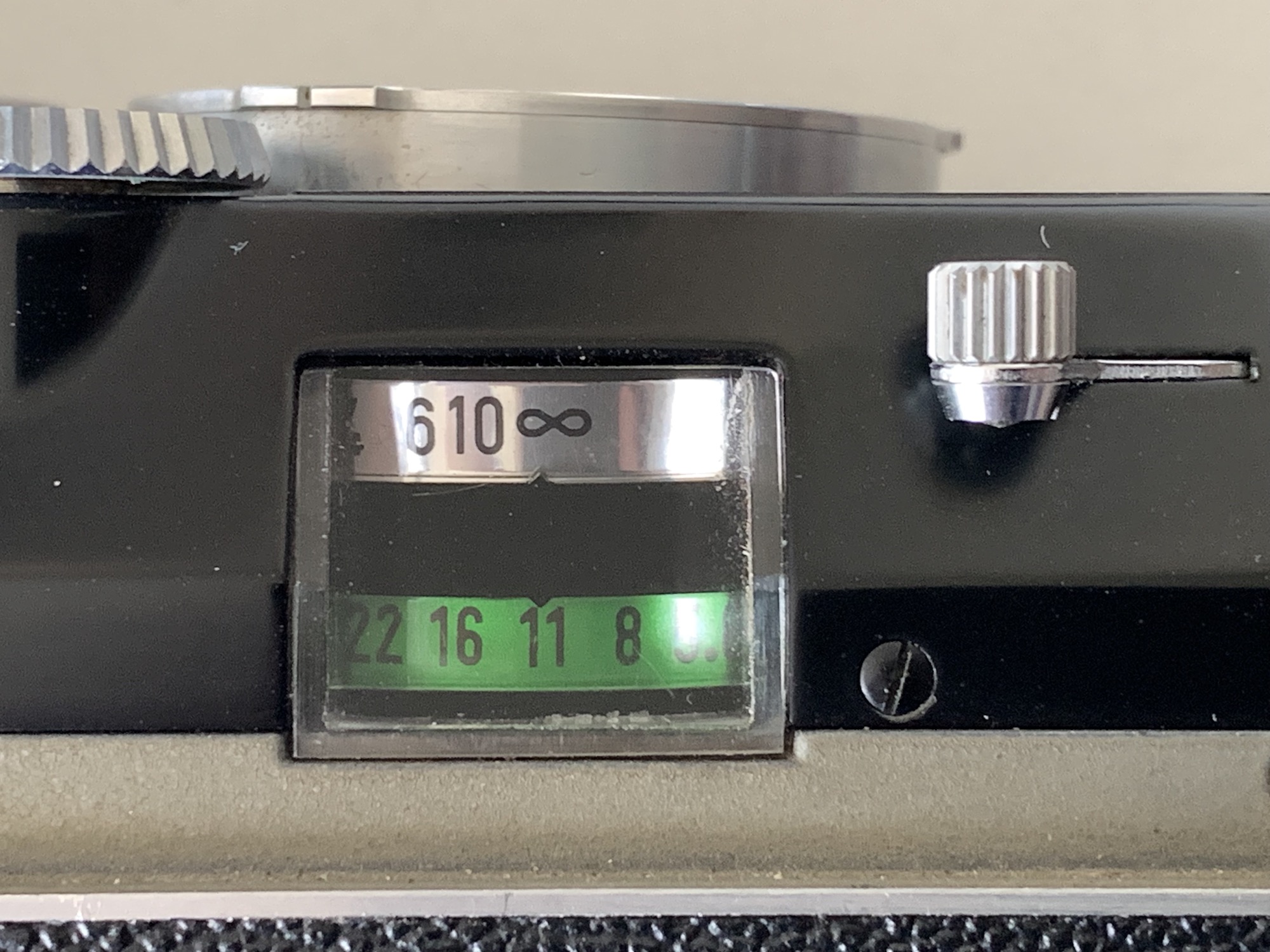 Der wesentliche Unterschied ist die Möglichkeit, die Belichtung auch manuell einzustellen. Am rechten Stellrad können Verschlusszeit bzw. Lichtwert eingestellt werden; zur Verstellung der Blende wird ein Knopf im Stellrad gedrückt. Die Kamera kann im Bereich 1/30 bis 1/500 eingestellt werden, es stehen die Blenden 3,5–22 zur Verfügung. Die Belichtungsdaten wie der Lichtwert können im entsprechenden Fenster abgelesen werden. Die Kamera kann daher auch genutzt werden, wenn die Selenzelle – wie bei meiner oben gezeigten Rolleimagic – unbrauchbar geworden ist. Auch der Schärfentiefenbereich wird automatisch angezeigt.
