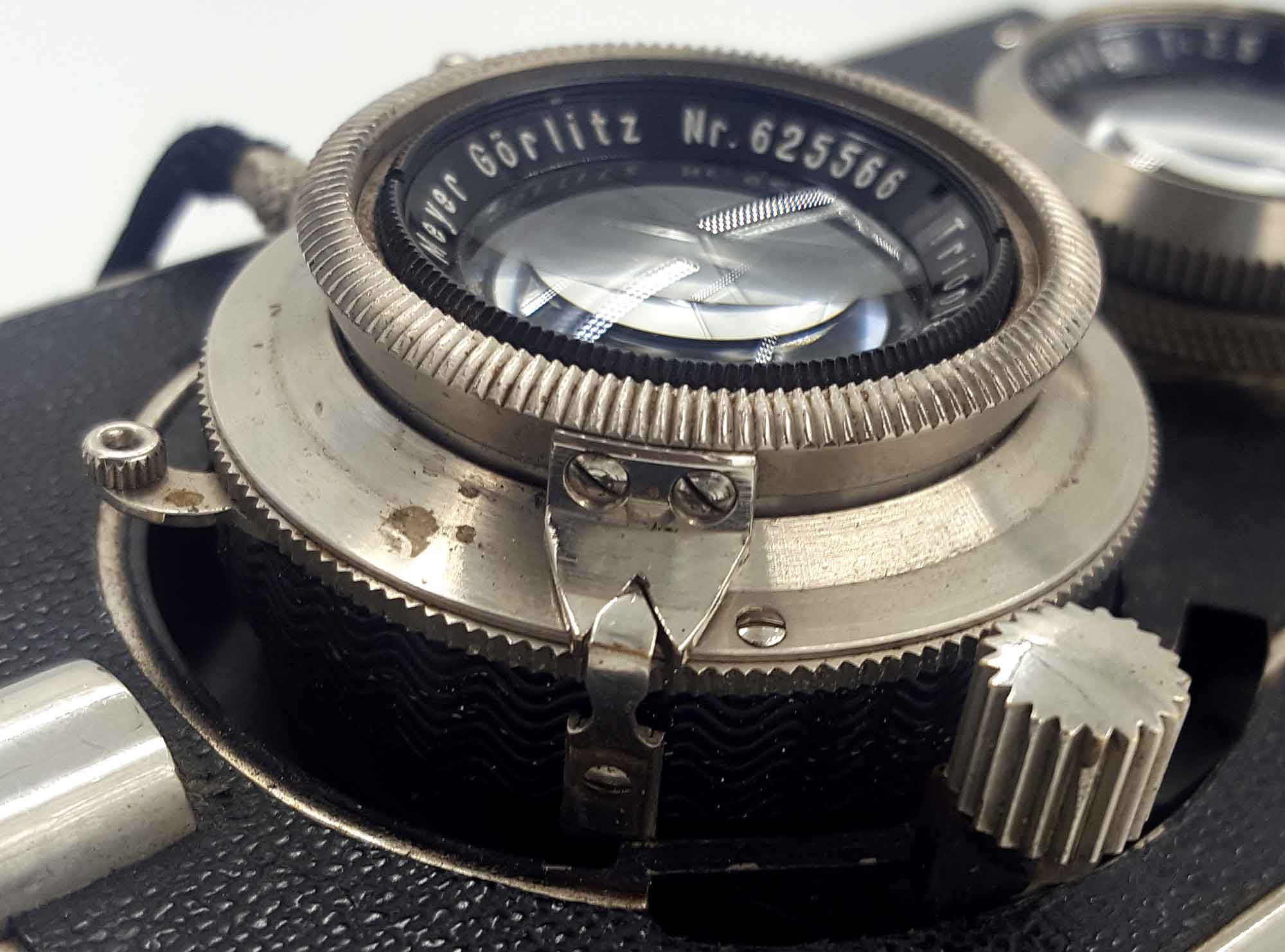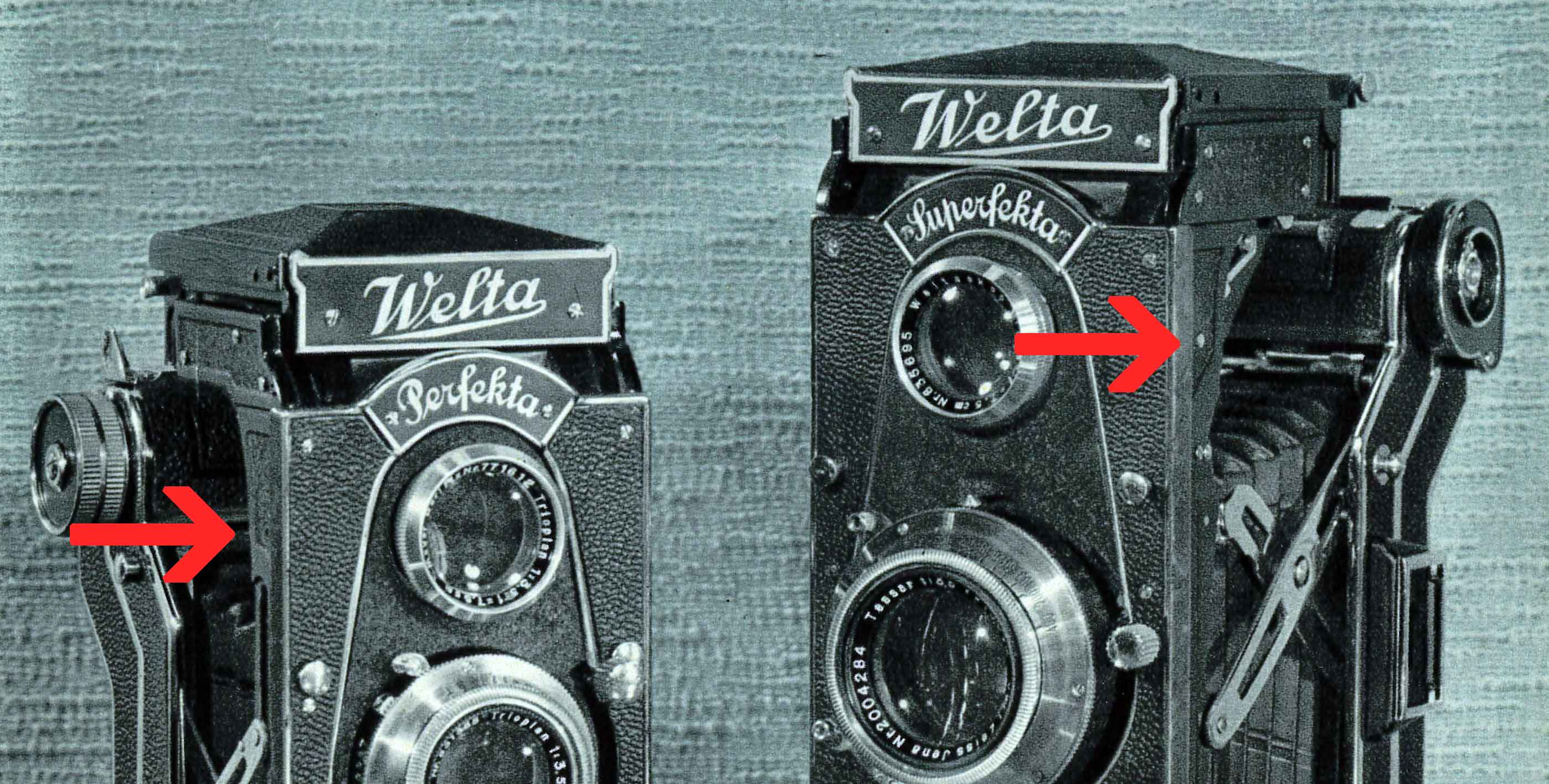 bei meiner Kamera sind auch die beiden Bohrungen zu sehen. Keine Ahnung, wofür die waren. Was mir bei Deinen Kameras auffällt ist dieses Bildzählwerk. Das fehlt bei meiner gänzlich. Habe mal die Seriennummer der Objektive verglichen, deine beginnen mit 6, meine mit 9. Weitere Unterschiede: Welta Perfekta Schild jetzt in Aluminium, anstatt in Messing. Verschluss jetzt ein Compur.