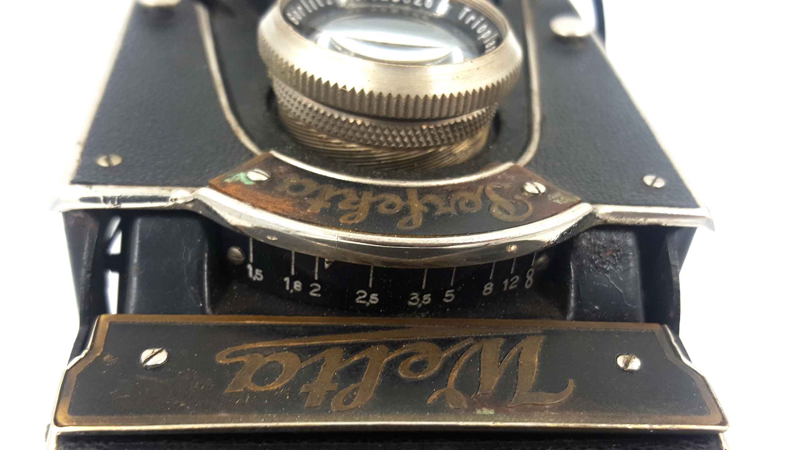 Die Messingschilder scheint es nur bei den älteren Exemplaren gegeben zu haben (meine datieren nach Compur und Objektiv in die Jahre 1933 und 1934). Bei späteren Modellen waren dann schwarze Aluminiumschilder mit weißer Schrift üblich.
