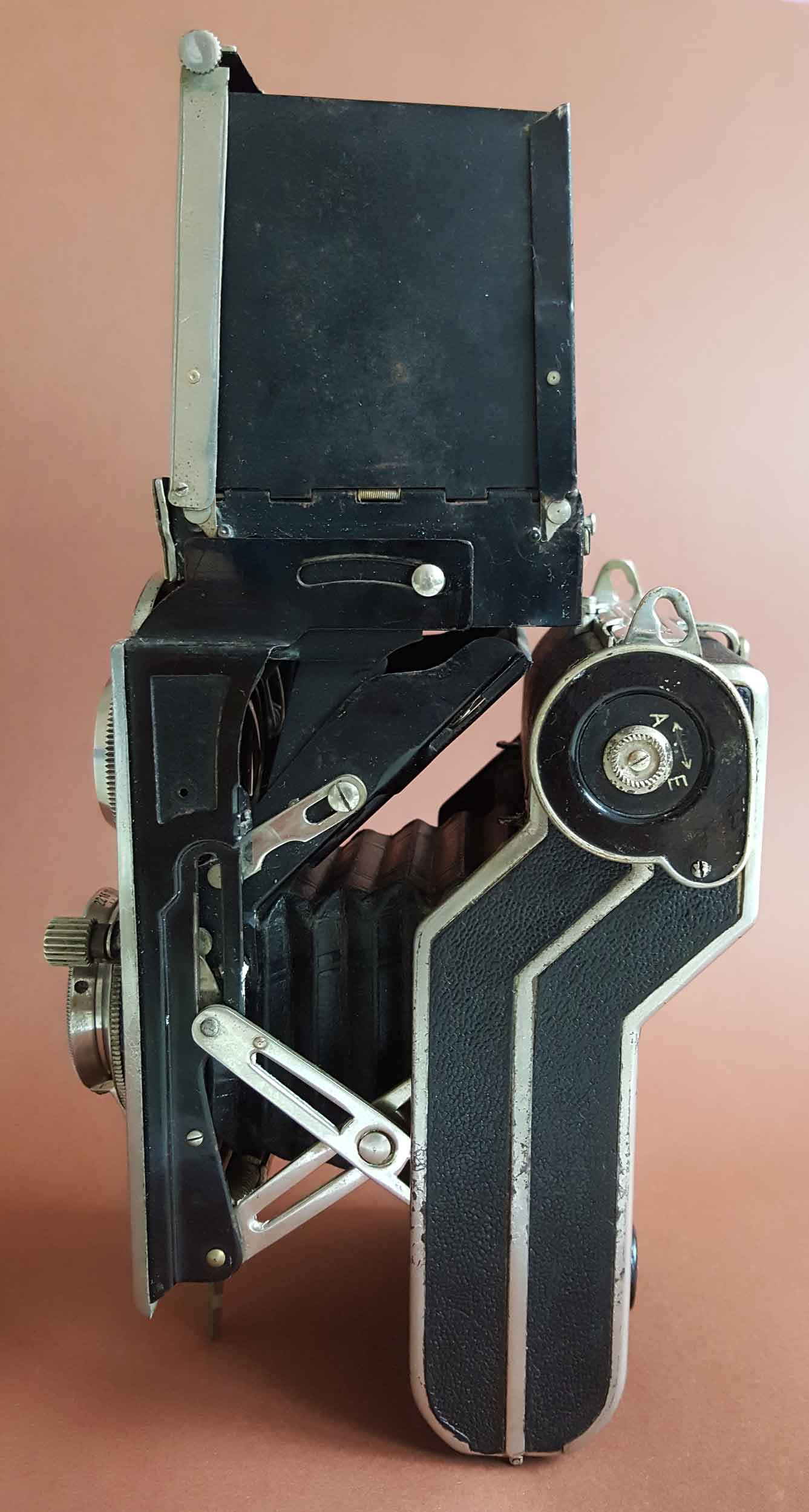 vielen Dank – in der Tat ein sehr interessantes Modell. Aus heutiger Sicht eine skurrile Konstruktion; richtig platzsparend ist die Kamera auch im zusammengeklappten Zustand nicht. Aber vieles wirkt sehr durchdacht; die Anordnung der Bedienungselemente ermöglicht vollständige Kontrolle von oben. Die raffinierten Trageriemenhalterungen hatte ich übrigens noch gar nicht wahrgenommen...