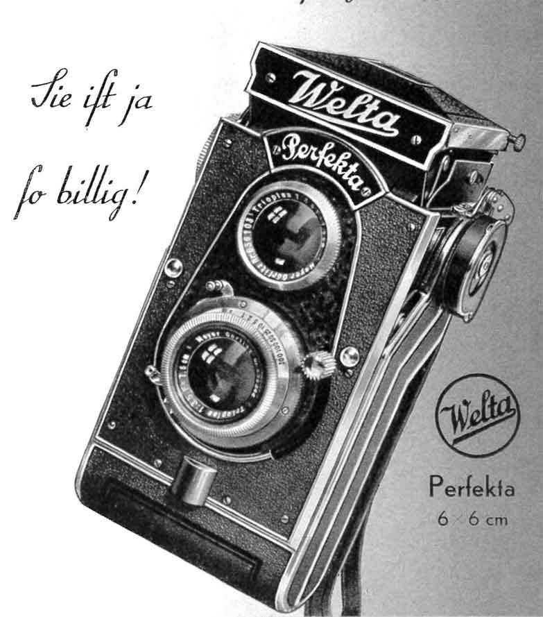 heute möchte ich kurz eine weitere faltbare TLR vorstellen. Die Welta Perfekta wurde 1933 vorgestellt und war damit die erste faltbare TLR für den Rollfilm 120 (dt. Typ B2-8). Die Perfekta belichtet Bilder im Format 6x6 (Die größere aber jüngere Schwester Welta Superfekta belichtet 6x9 und wurde hier schon im Forum vorgestellt.).