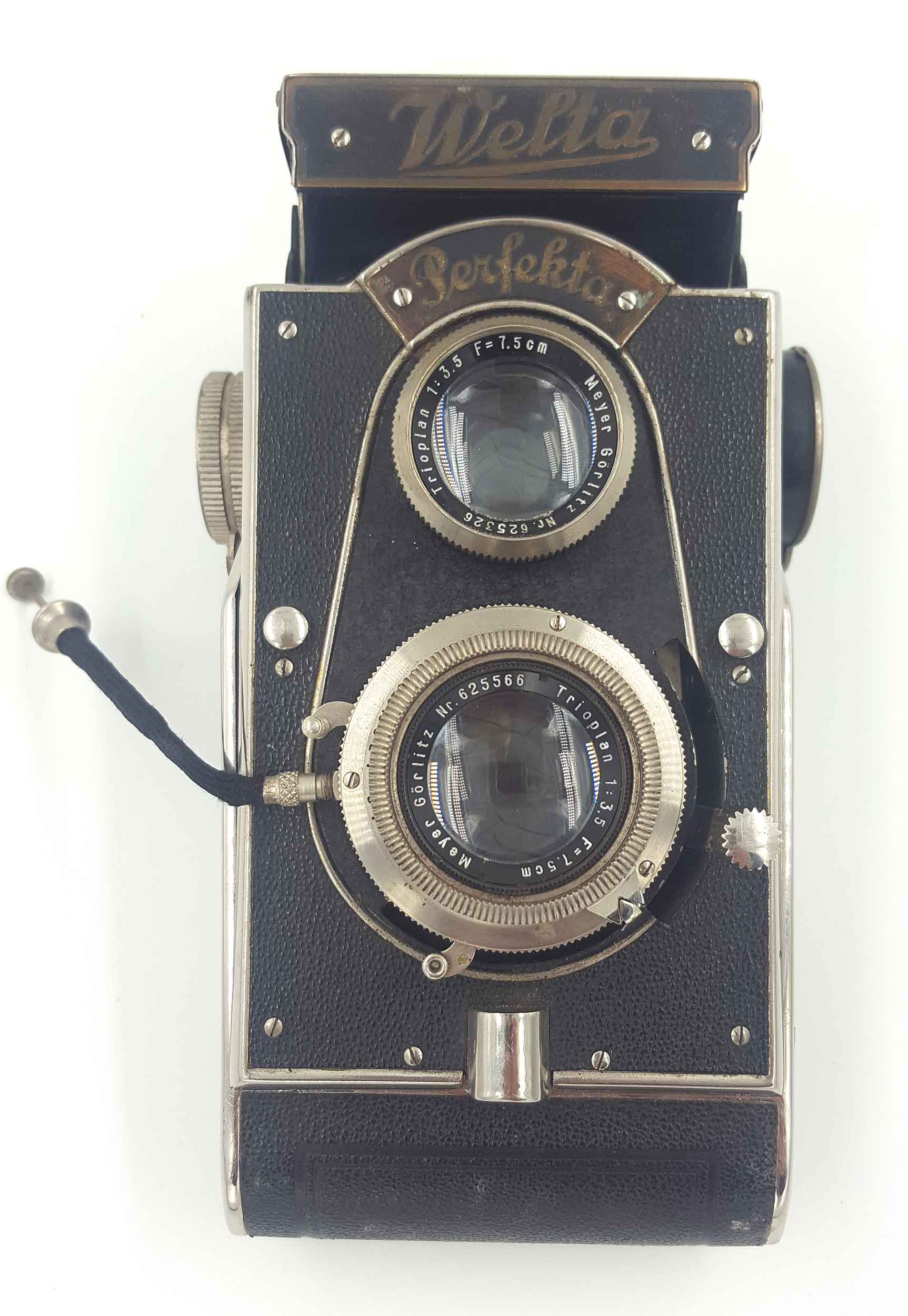 Ausgestattet ist die Welta Perfekta mit Trioplan 3.5, Xenar 3.8 oder Tessar 3.8 in Compur oder Compur Rapid. Als Sucherobjektiv dient ein Trioplan 3.5 oder ein Weltaskop 3.8. Ob die hier vorgestellte Version mit Triotar 4.5 auch werksseitig gebaut wurde, kann ich bisher nicht belegen. Eine Suche im Netz ergab zumindest ein weiteres Exemplar mit dieser Ausstattung. Ich könnte mir durchaus auch vorstellen, dass das Triotar 4.5 ebenso wie das Tessar 3.8 in direkter Konkurrenz zur Rolleicord/Rolleiflex verbaut wurde. Die Ausführung mit dem Trioplan findet man heute am häufigsten.