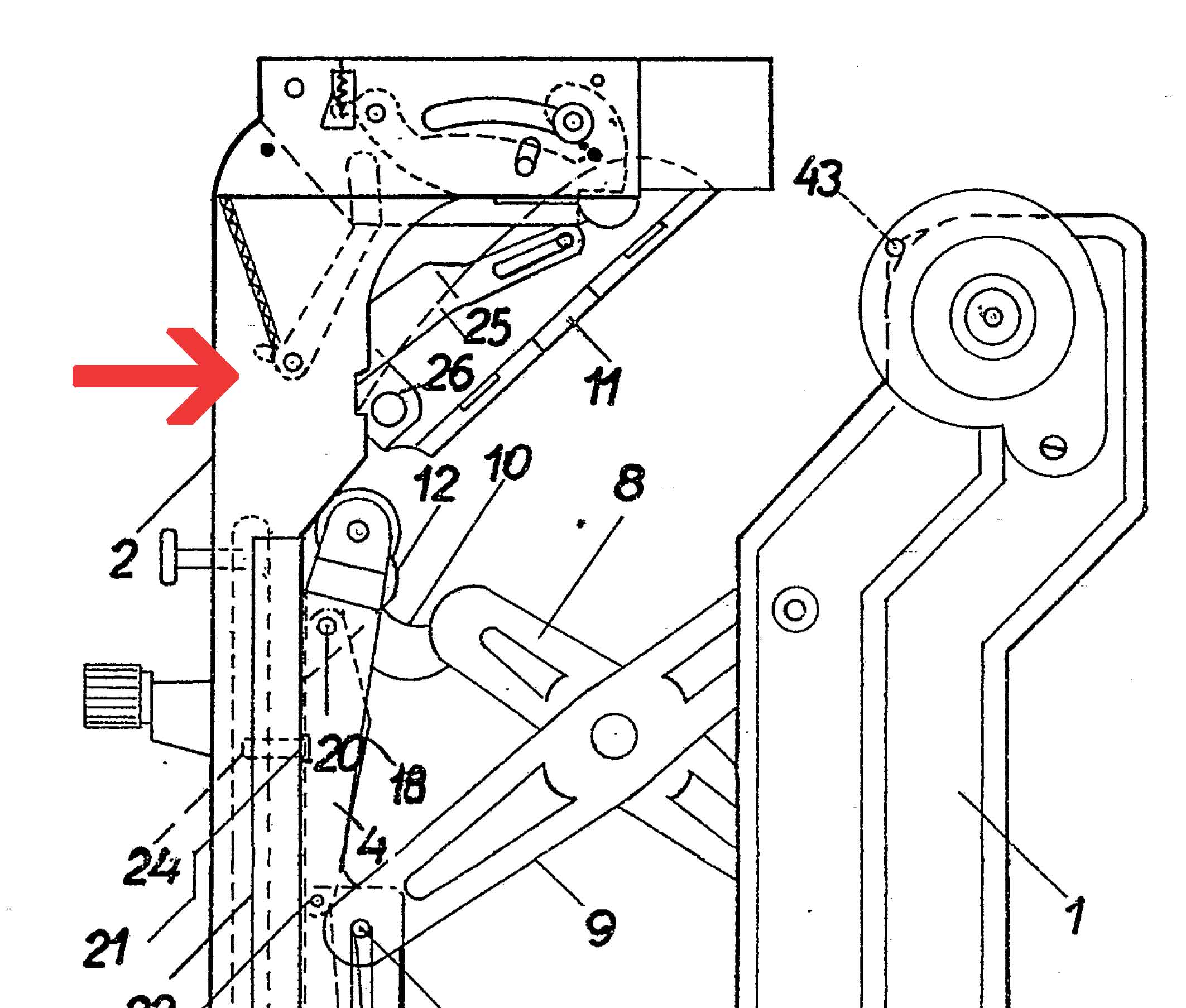 das abgesetzte Feld mit der Bohrung ist mir auch aufgefallen, ohne dass ich mir einen Reim darauf machen kann. Laut beigefügtem Ausschnitt aus dem Patent, könnte an der Stelle der Bohrung etwas befestigt sein. Ist es aber nicht bei den Perfektas, die ich kenne.