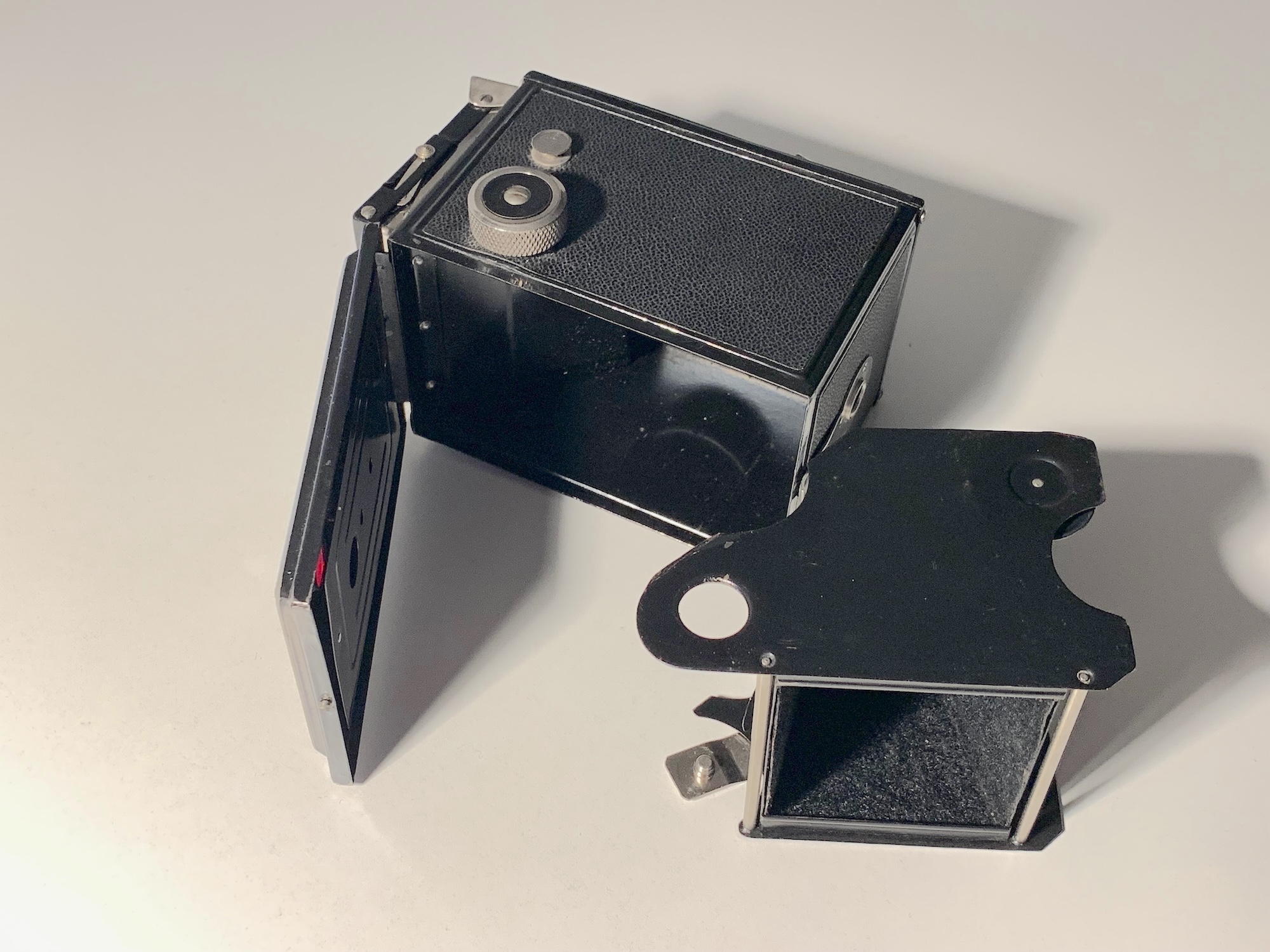 Es handelt sich um eine zweiäugige 6x6-Spiegelreflexkamera mit Blechgehäuse. Das Laden erfolgt über einen herausnehmbaren Einsatz, wie es bei Boxkameras üblich ist.