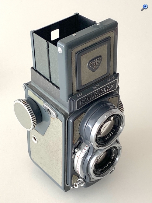 Hier beispielsweise ein Foto einer 4x4 TLR, die Rolleiflex 4x4: