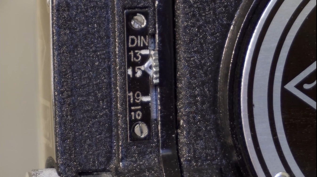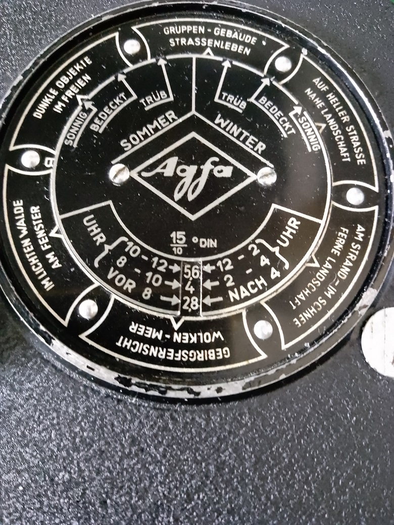 Rainer hat die Rubrik "Filmempfindlichkeit" bei seiner Gerätevorstellung mit einem Fragezeichen versehen. Die Belichtungstabelle auf der Rückseite, in der Bedienungsanleitung "Blendenermittler" genannt, geht von einem 15 DIN Film aus. Man wird also, mit etwas Rechnerei für den passenden Belichtungswert, jede Filmempfindlichkeit verwenden können.