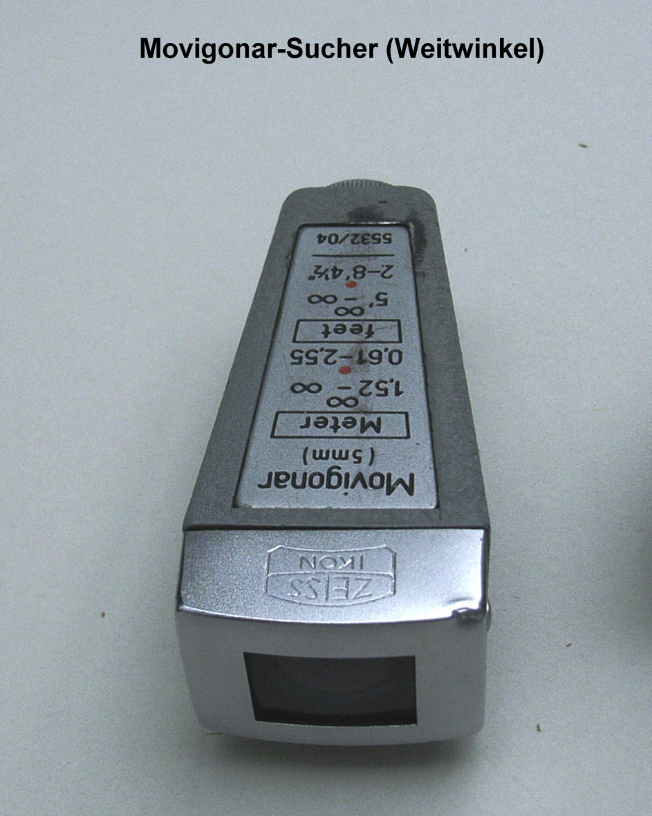 Objektiv: Carl Zeiss Tessar 1:1,9 . 0,2 Meter bis unendlich. Vorsatzlinsen mit Bajonett. Weitwinkel und Televorsatz war lieferbar. Auch mit zusätzlichem Aufsteck-Sucher.